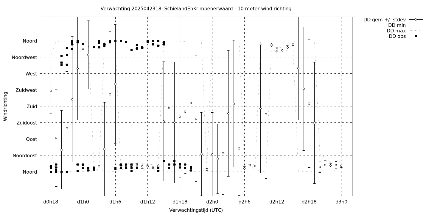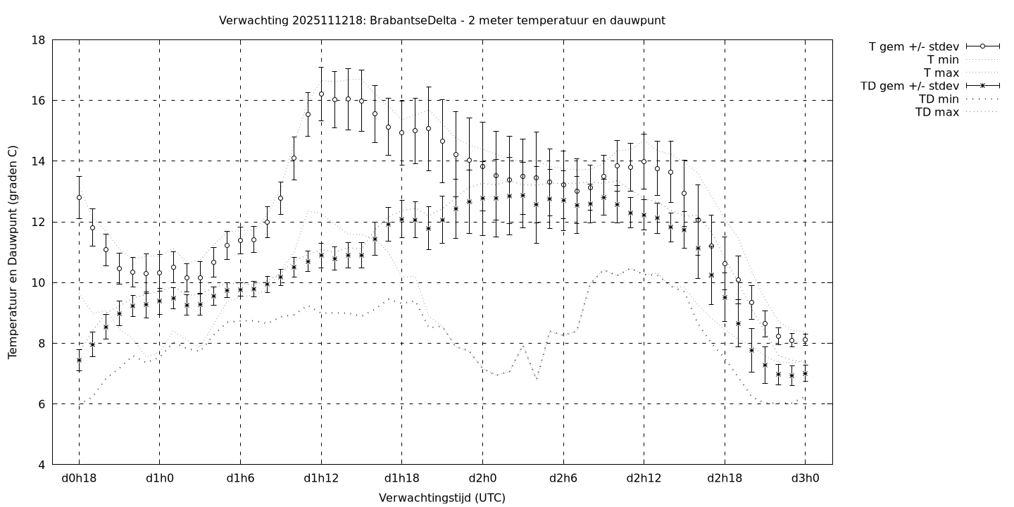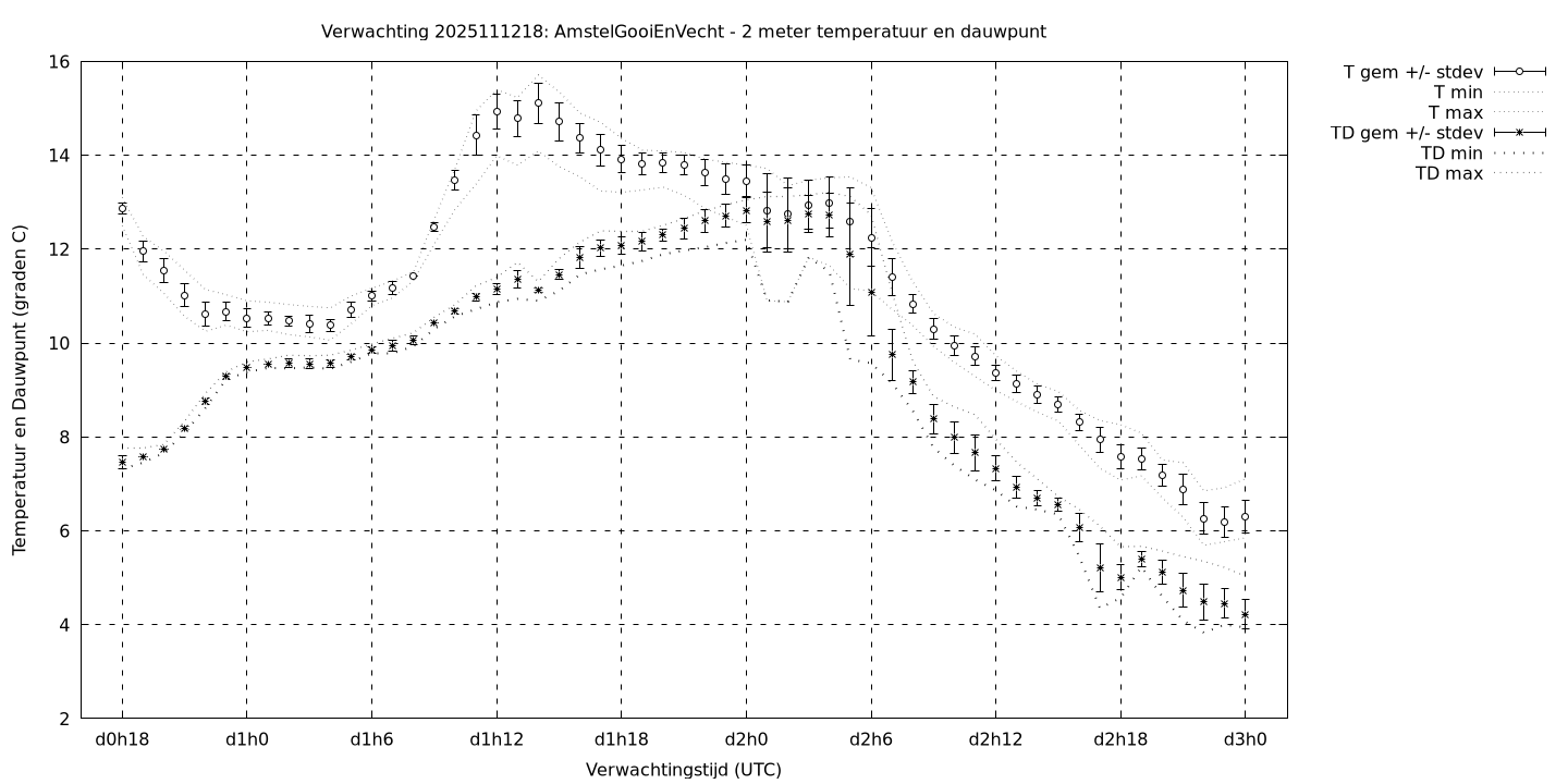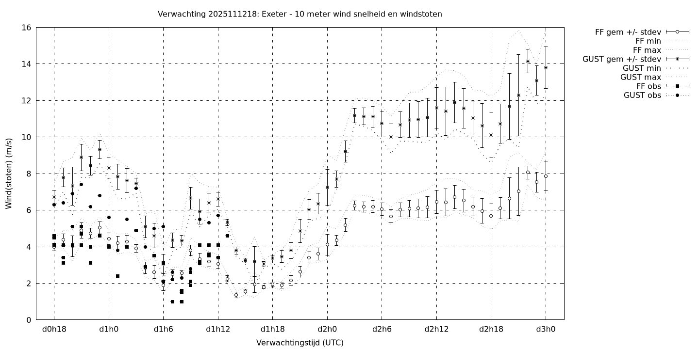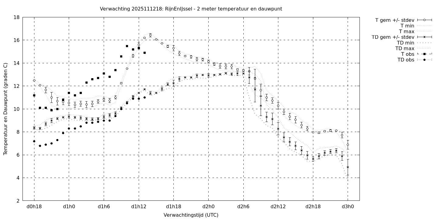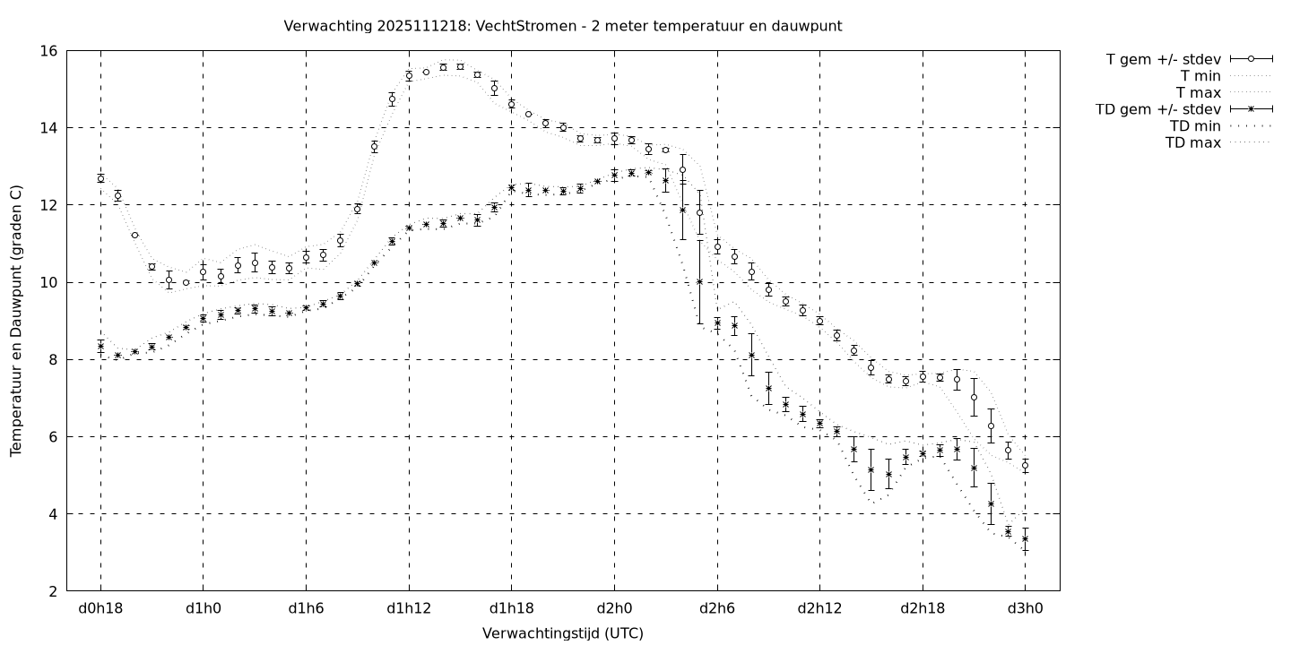 Tenslotte volgen grafieken van weersverwachtingen per locatie/waterschap, die gegoten zijn in de vorm van een tijdreeks, waarin niet alleen het gebiedsgemiddelde, maar ook de spreiding (via de standaarddeviatie) en het maximum en minimum gegeven worden. Tevens zijn de tabellen van de bijbehorende getallen gegeven.