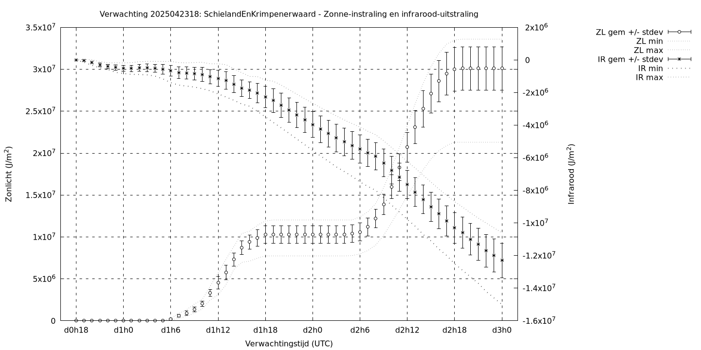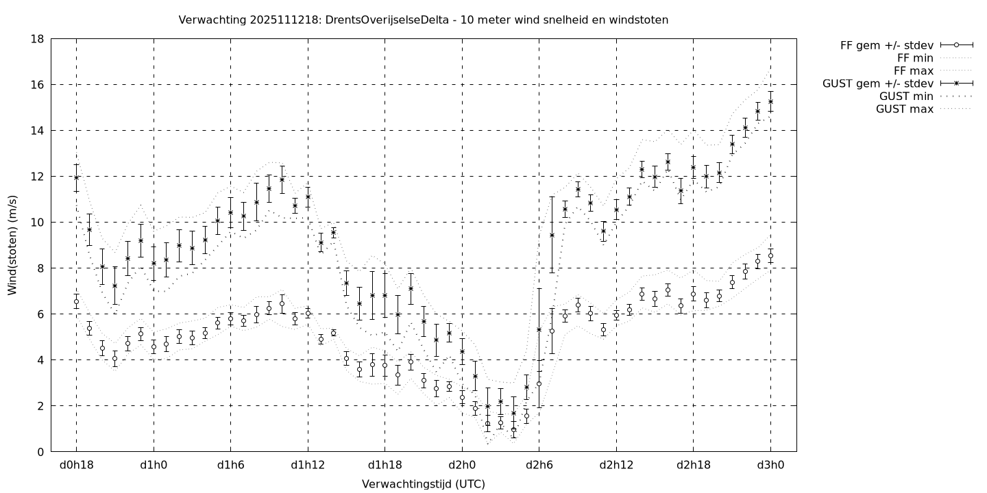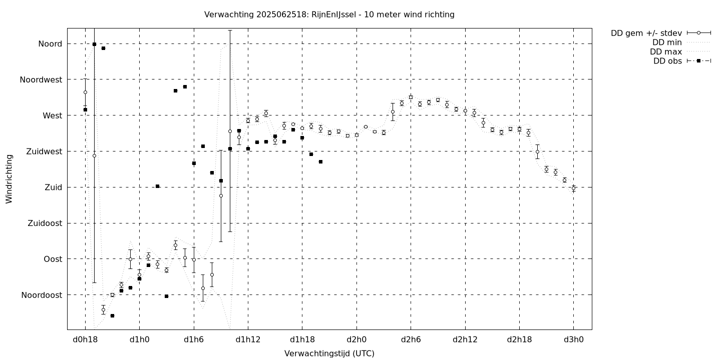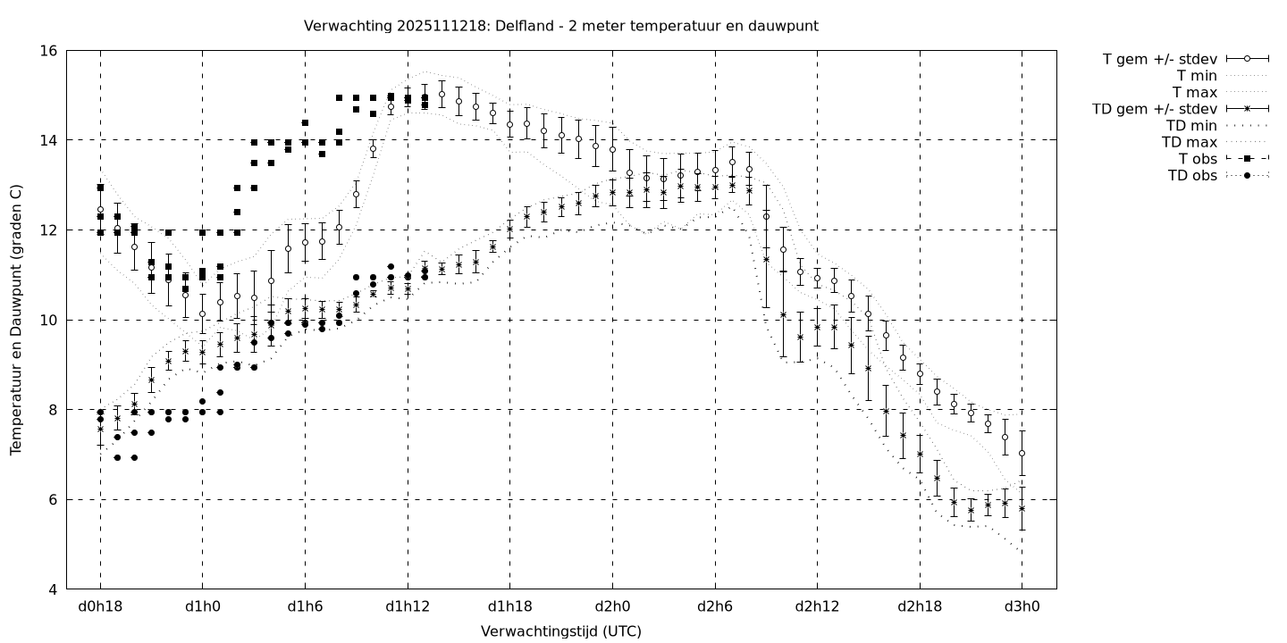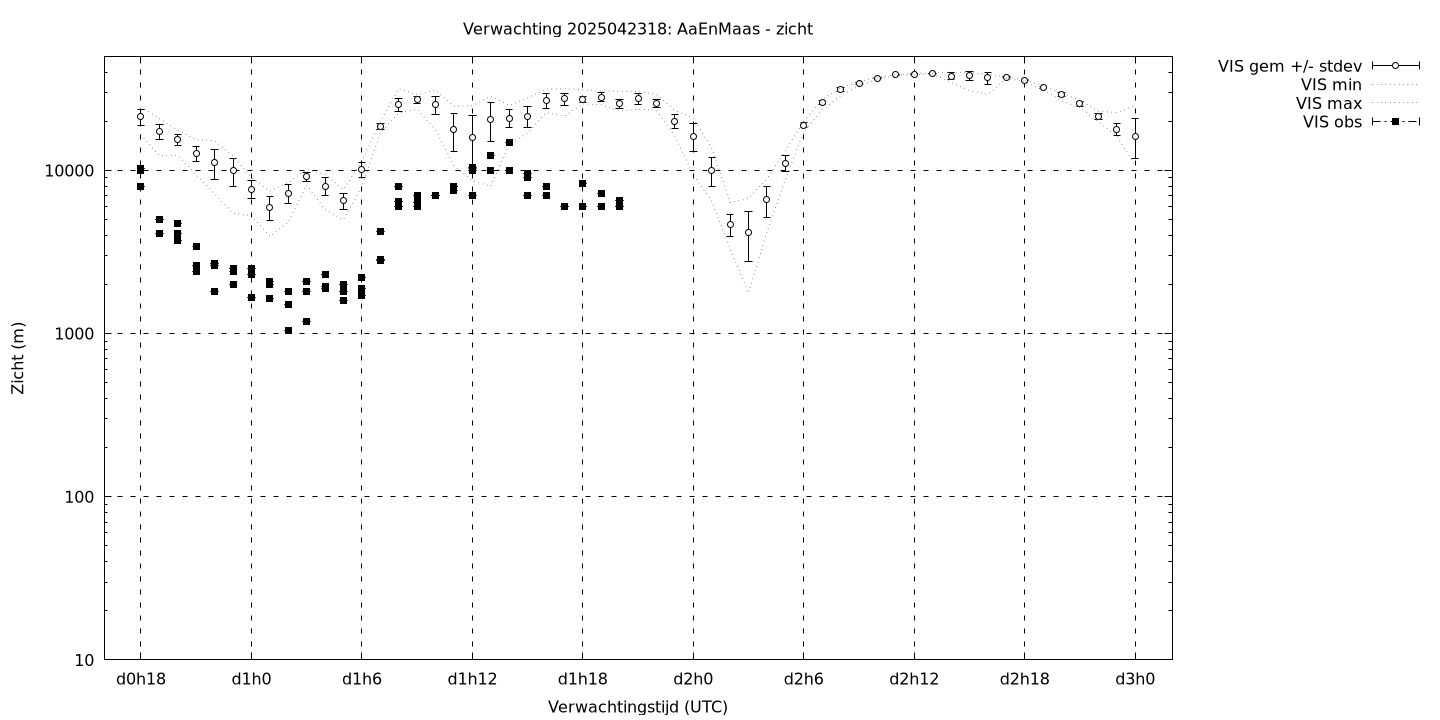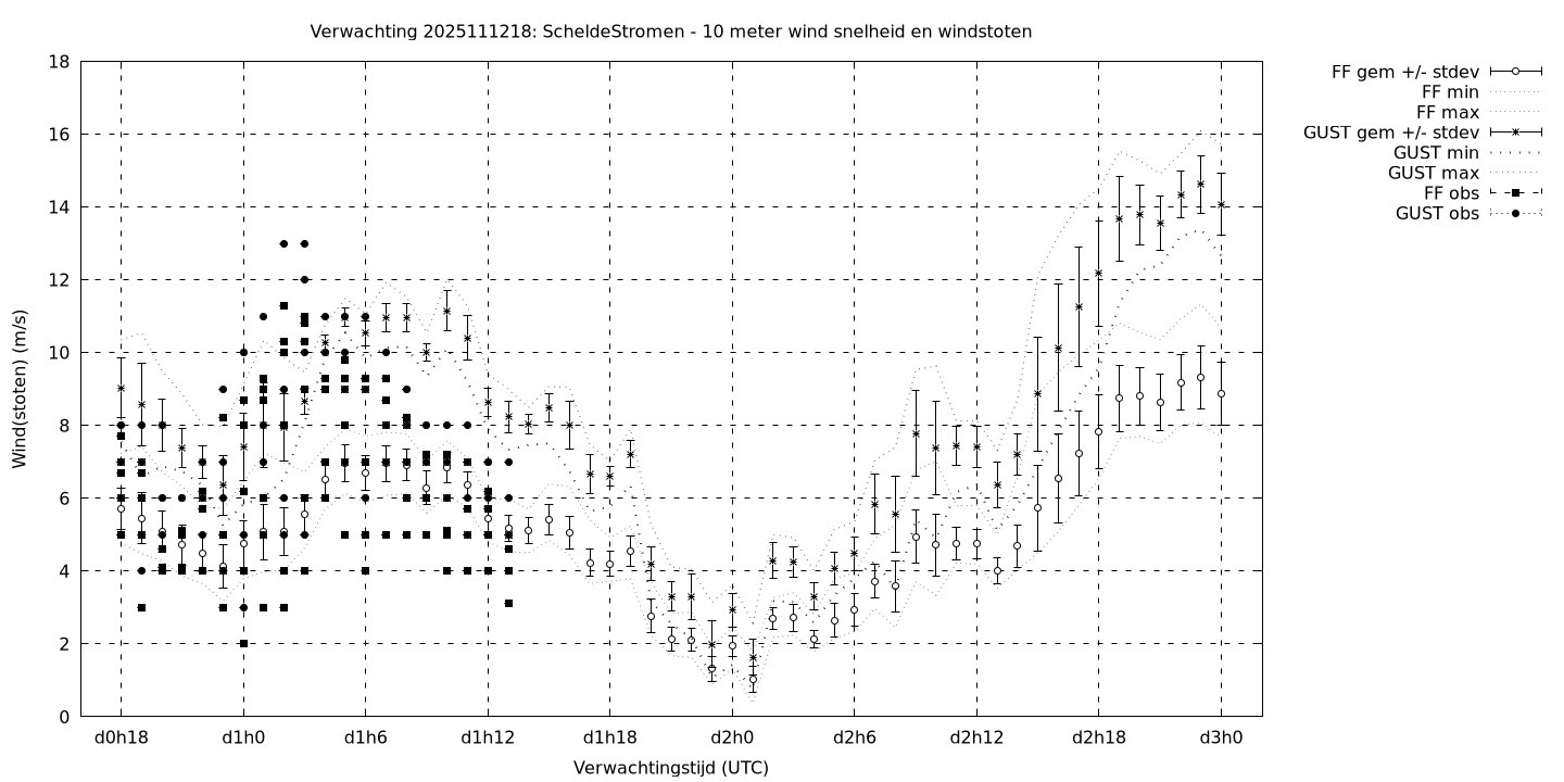 Tenslotte volgen grafieken van weersverwachtingen per locatie/waterschap, die gegoten zijn in de vorm van een tijdreeks, waarin niet alleen het gebiedsgemiddelde, maar ook de spreiding (via de standaarddeviatie) en het maximum en minimum gegeven worden. Tevens zijn de tabellen van de bijbehorende getallen gegeven.