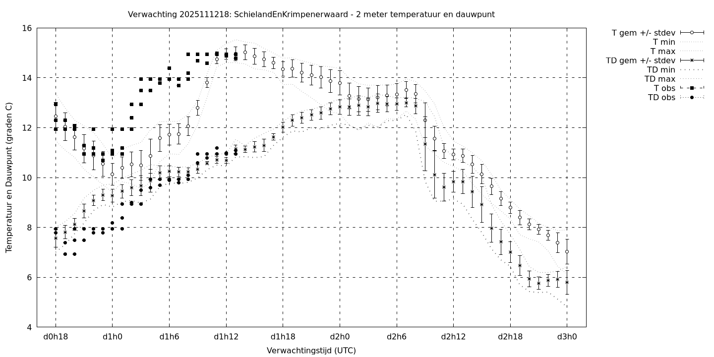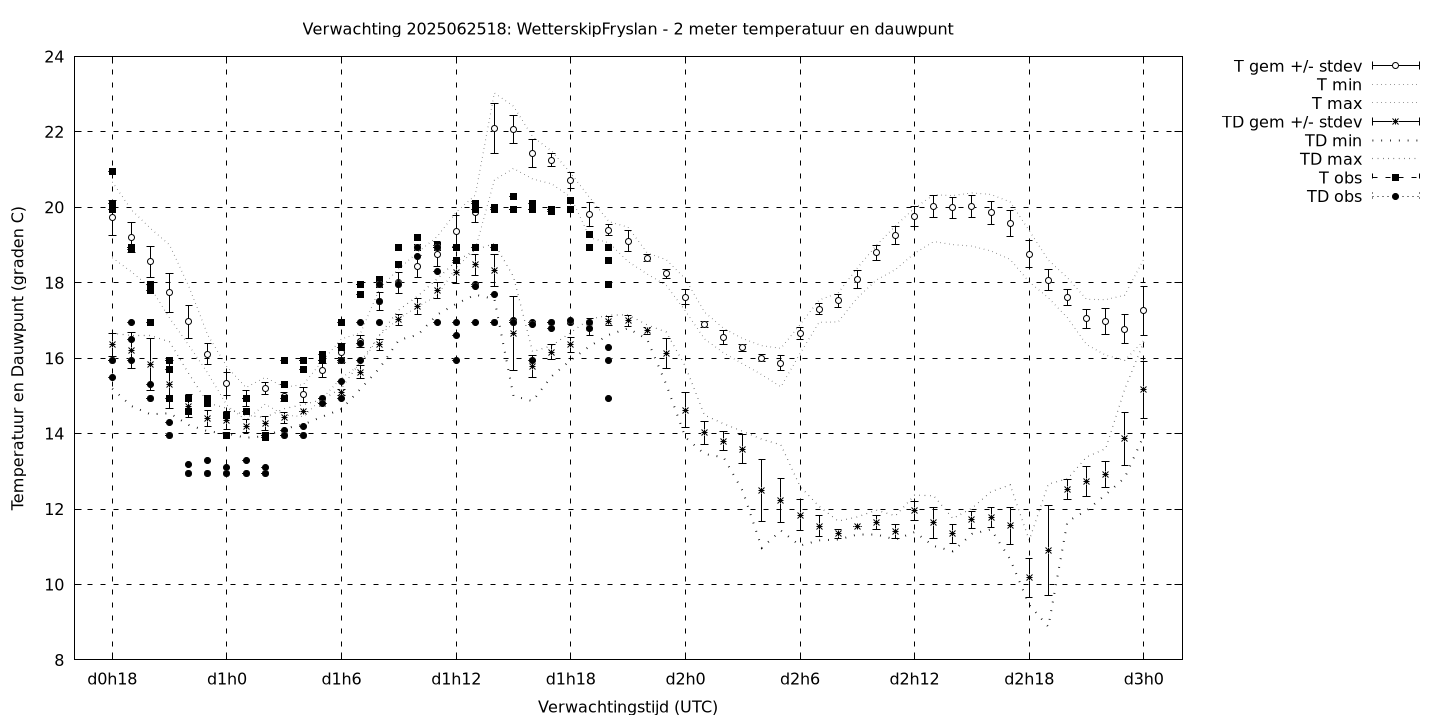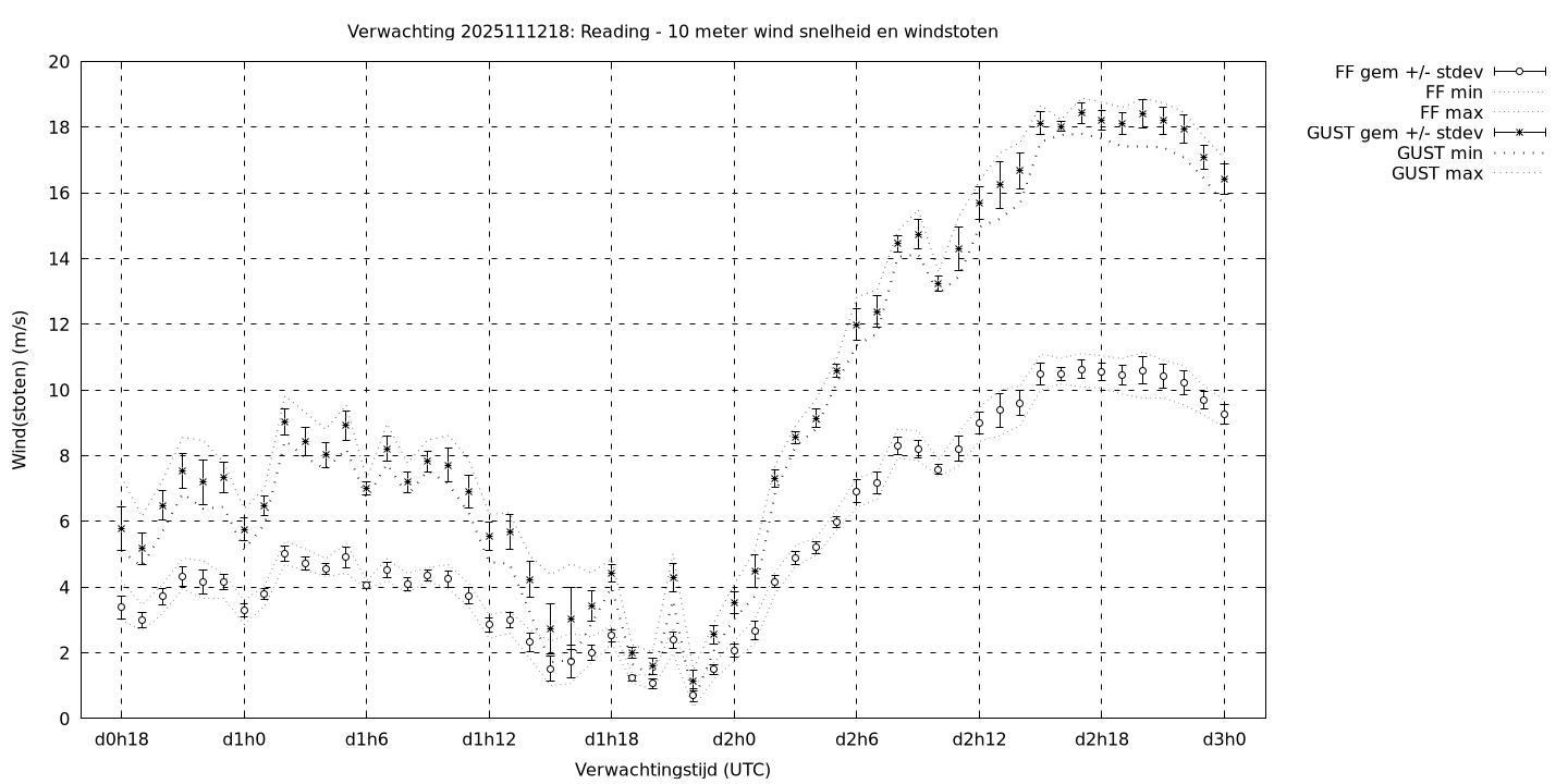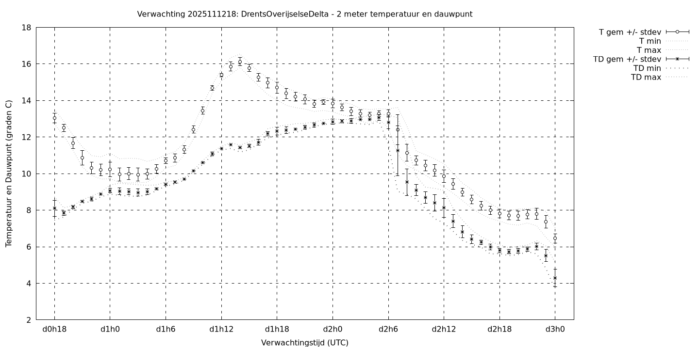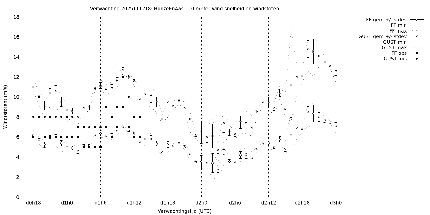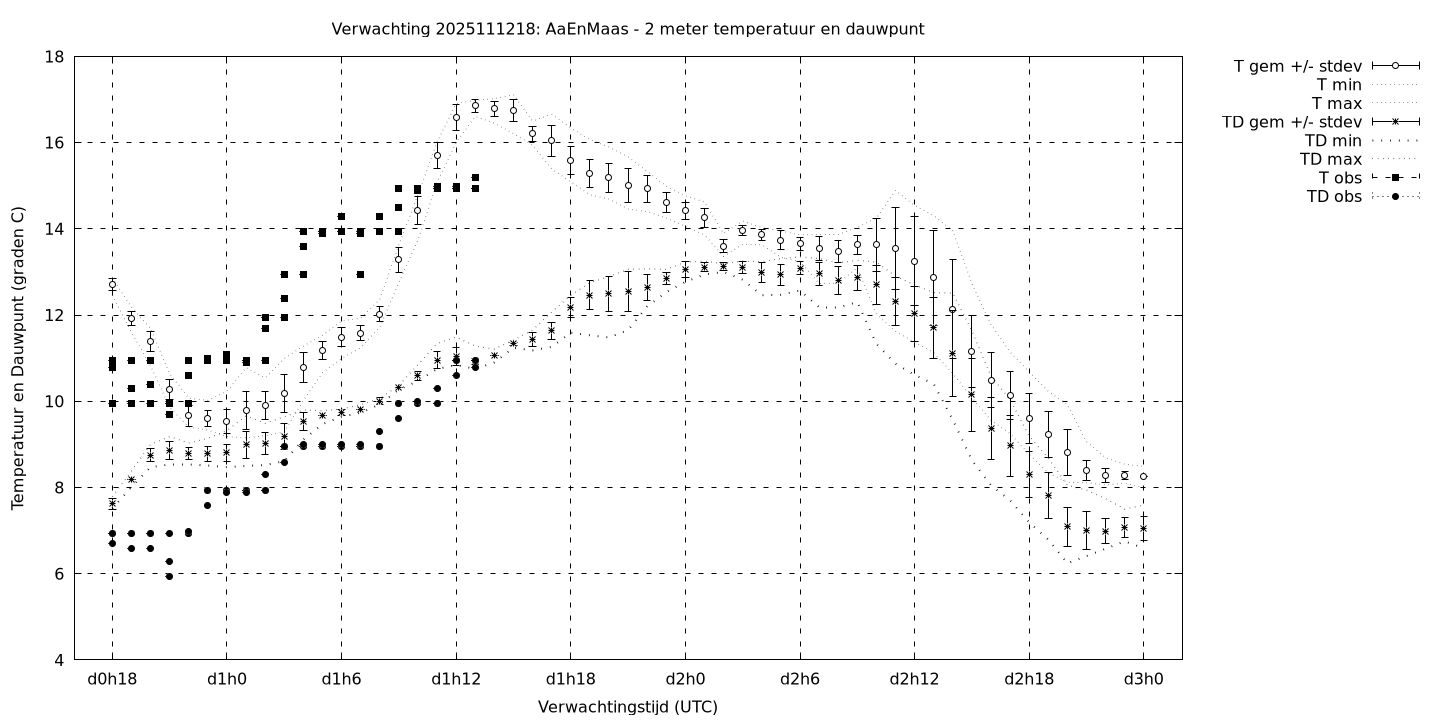 Tenslotte volgen grafieken van weersverwachtingen per locatie/waterschap, die gegoten zijn in de vorm van een tijdreeks, waarin niet alleen het gebiedsgemiddelde, maar ook de spreiding (via de standaarddeviatie) en het maximum en minimum gegeven worden. Tevens zijn de tabellen van de bijbehorende getallen gegeven.