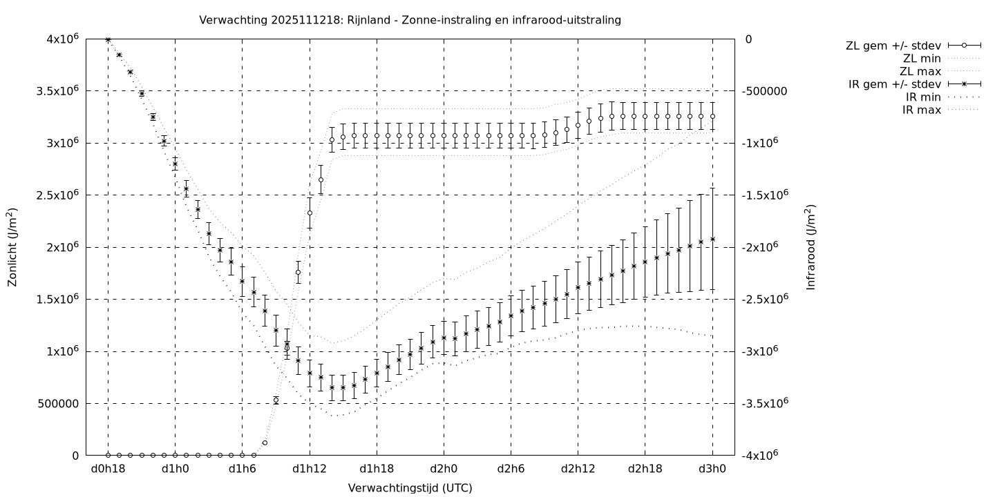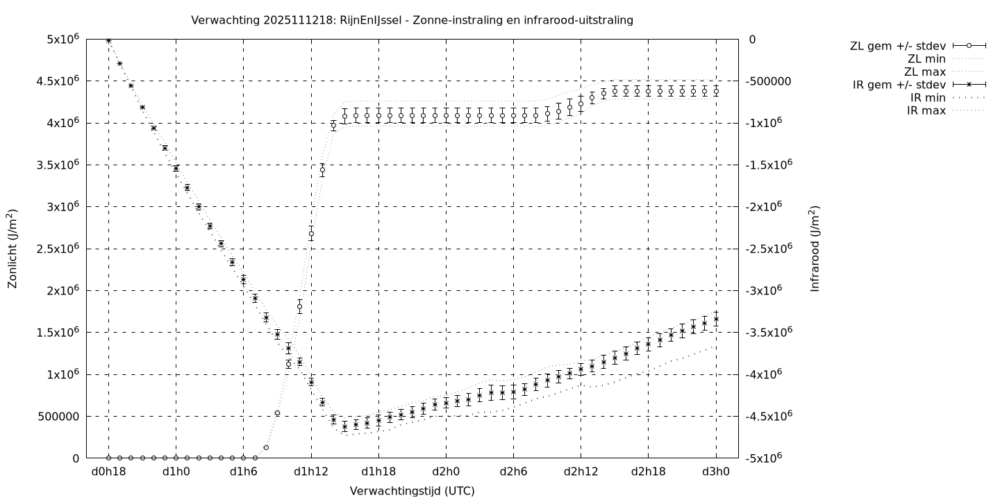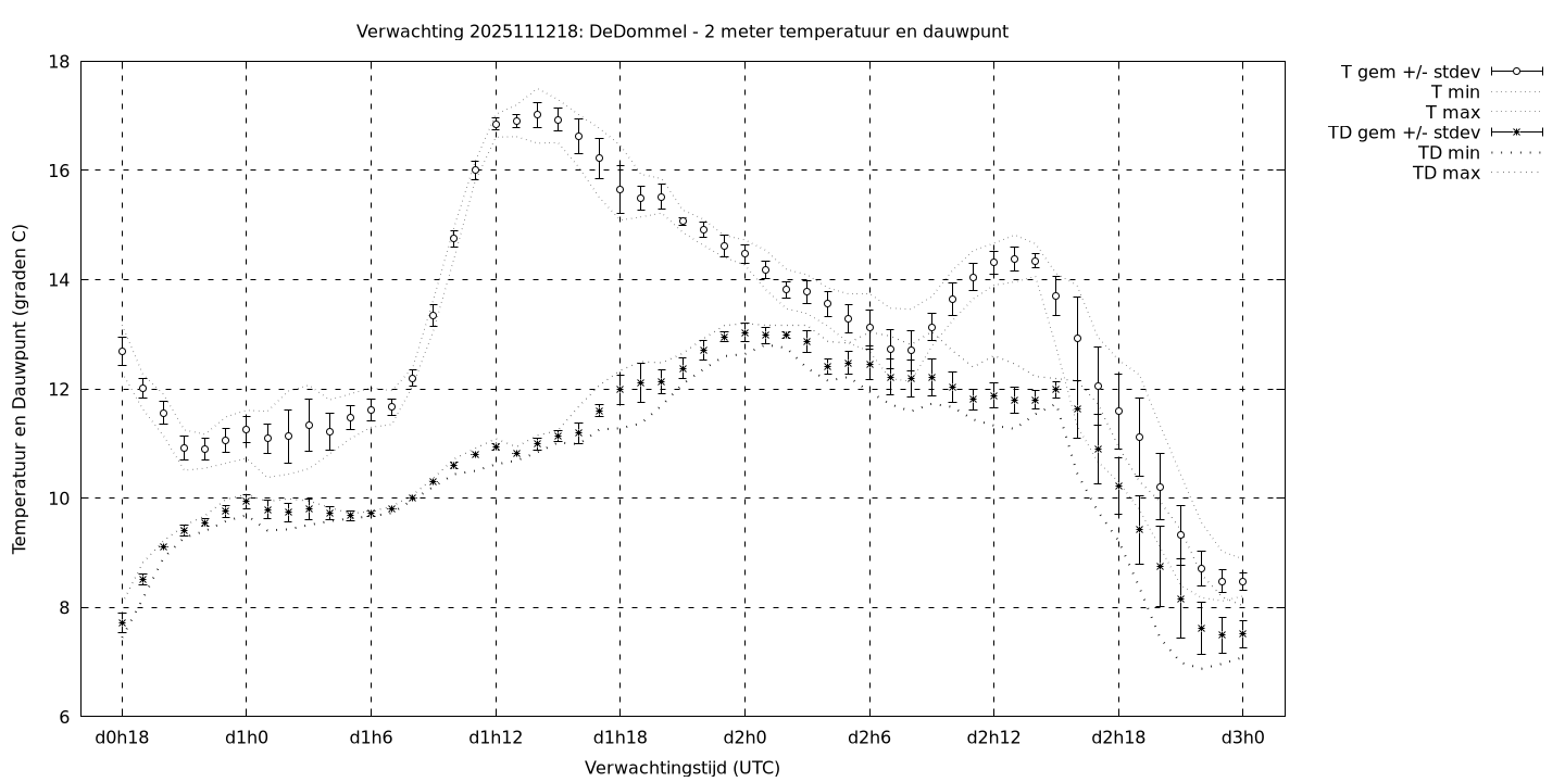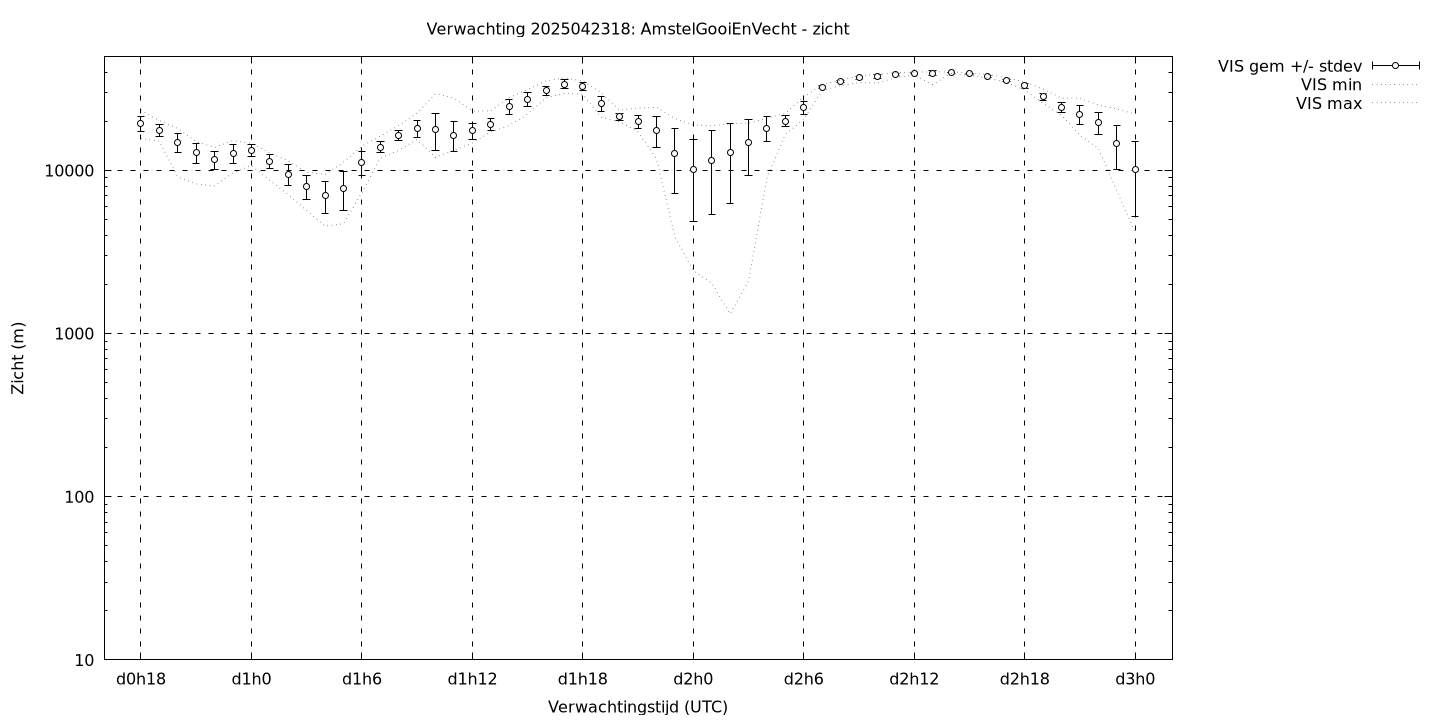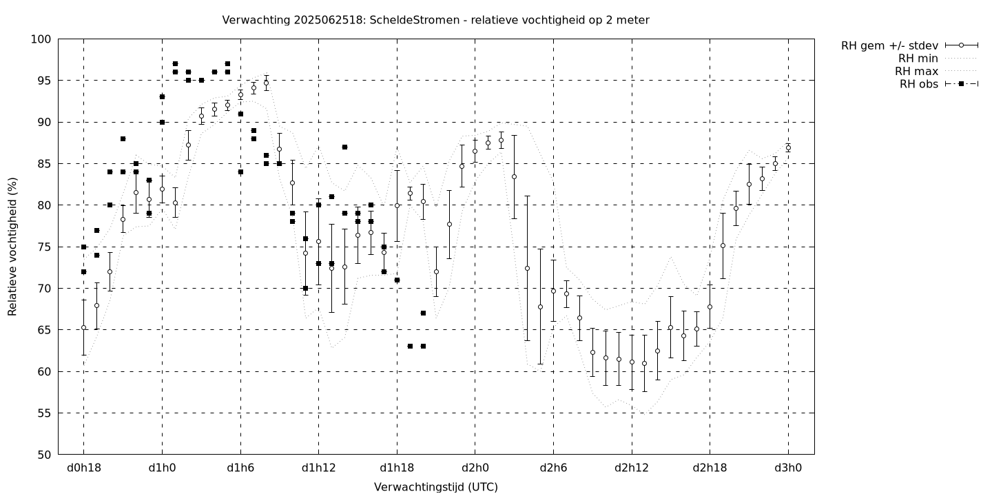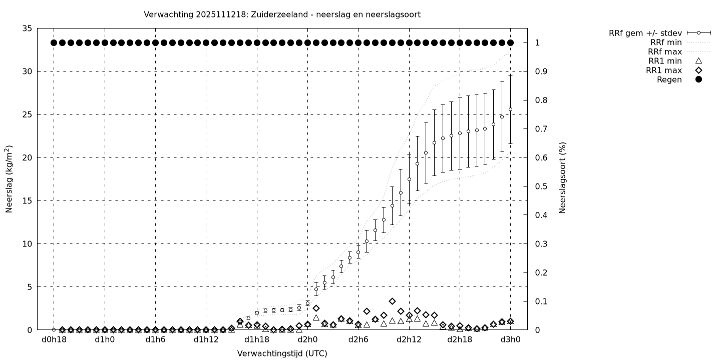 Tenslotte volgen grafieken van weersverwachtingen per locatie/waterschap, die gegoten zijn in de vorm van een tijdreeks, waarin niet alleen het gebiedsgemiddelde, maar ook de spreiding (via de standaarddeviatie) en het maximum en minimum gegeven worden. Tevens zijn de tabellen van de bijbehorende getallen gegeven.