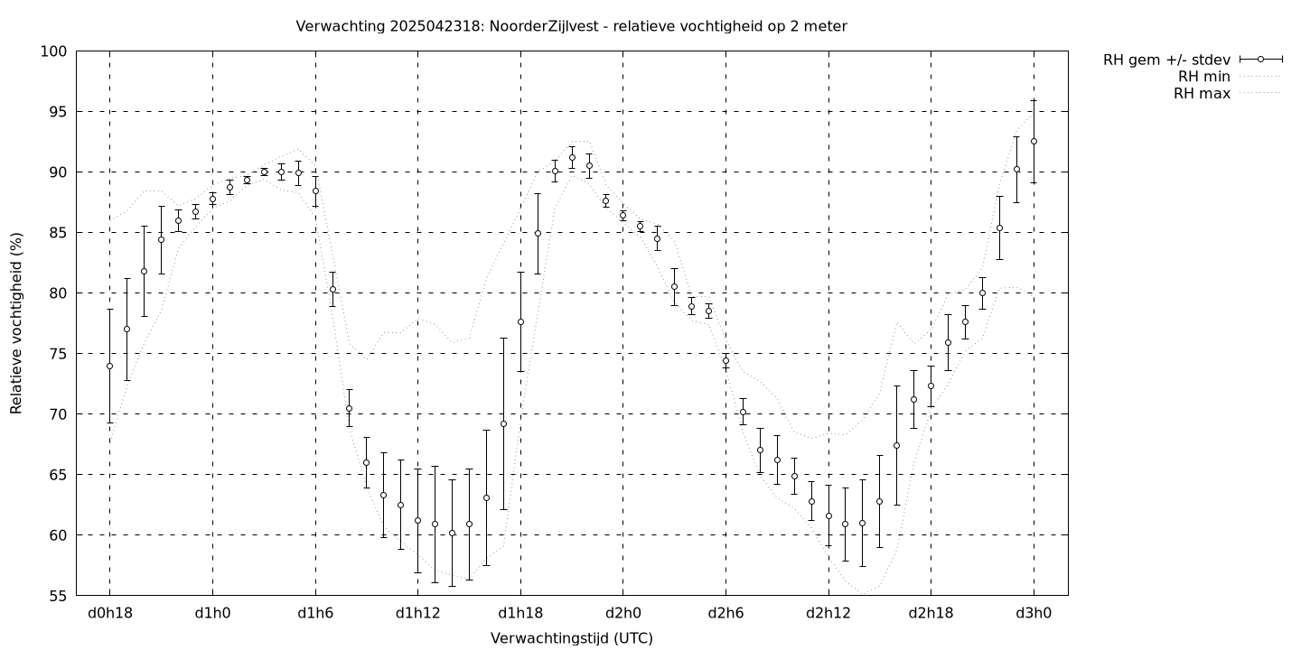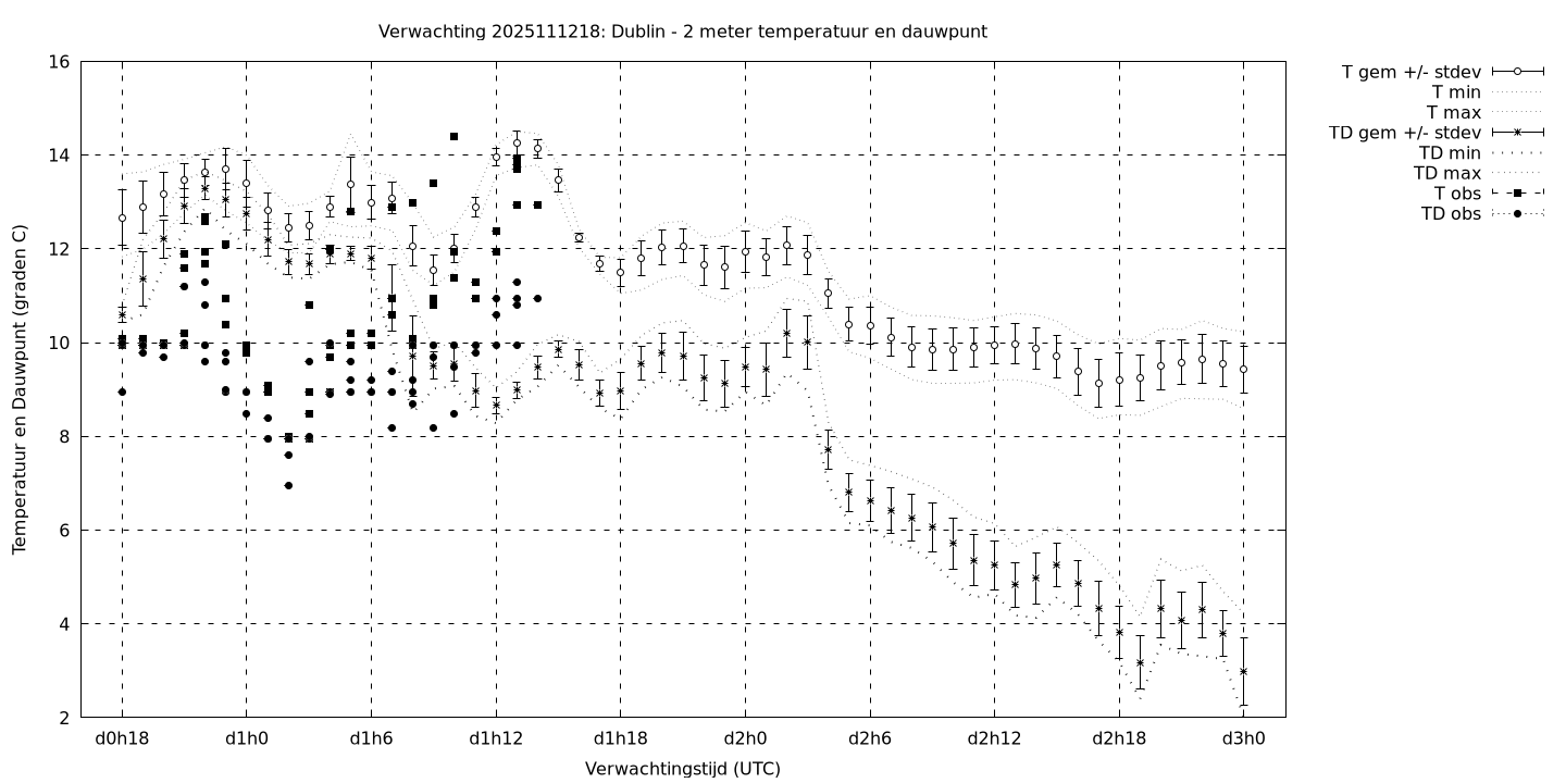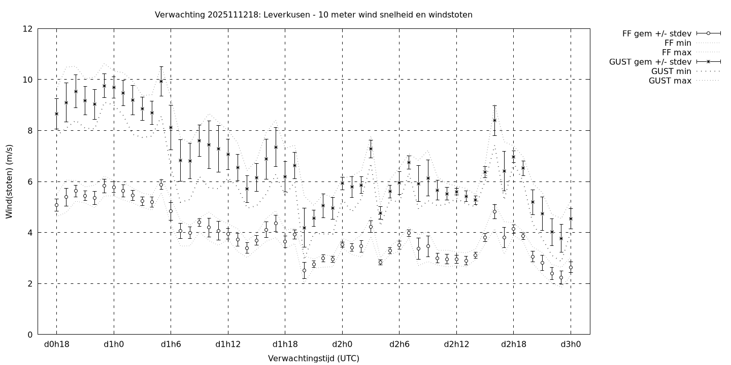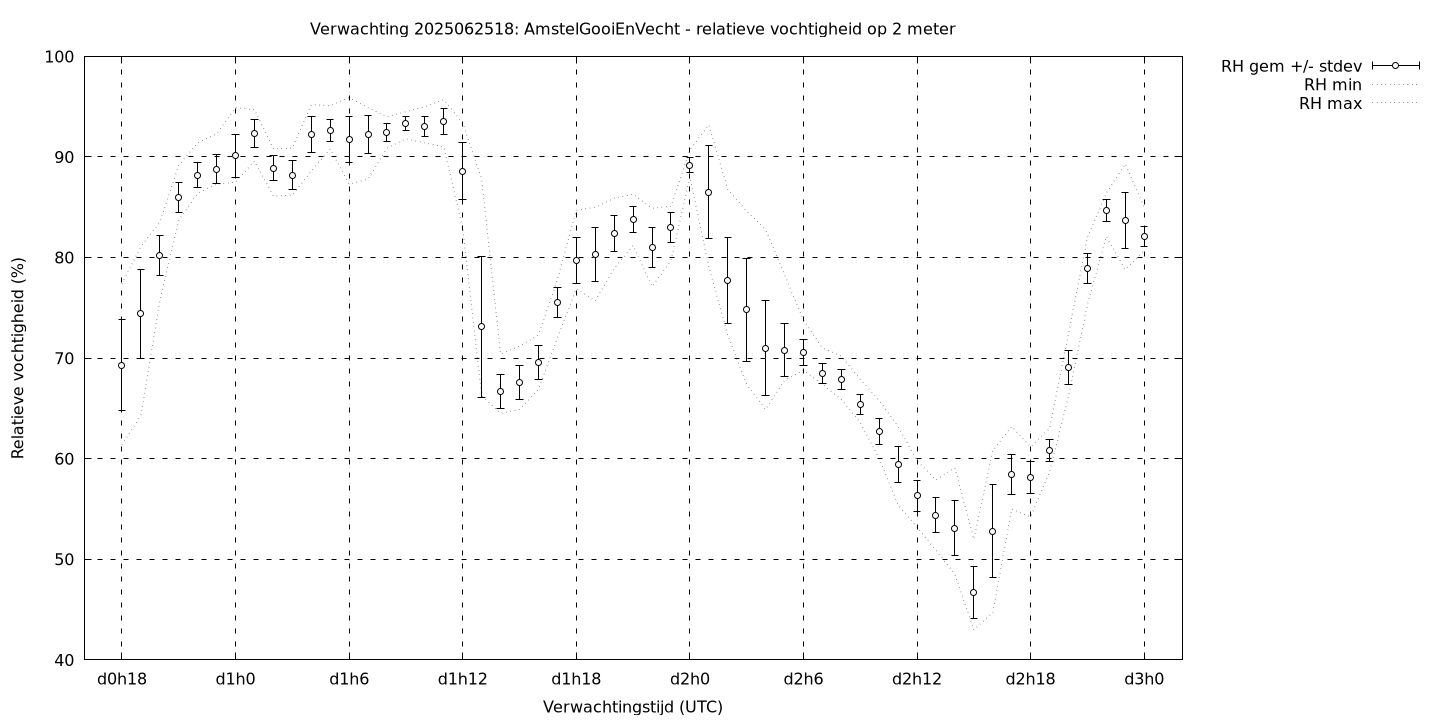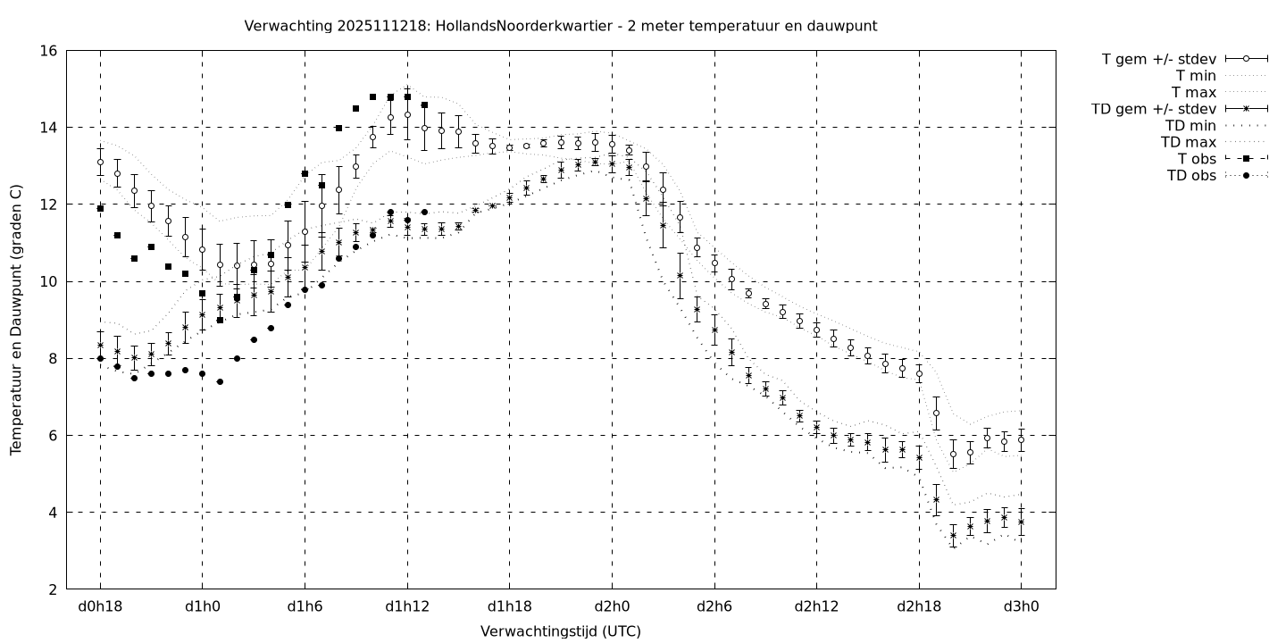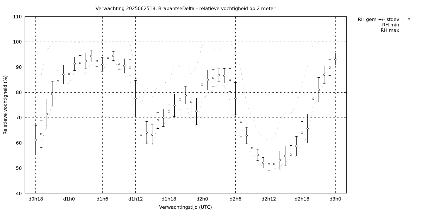 Tenslotte volgen grafieken van weersverwachtingen per locatie/waterschap, die gegoten zijn in de vorm van een tijdreeks, waarin niet alleen het gebiedsgemiddelde, maar ook de spreiding (via de standaarddeviatie) en het maximum en minimum gegeven worden. Tevens zijn de tabellen van de bijbehorende getallen gegeven.