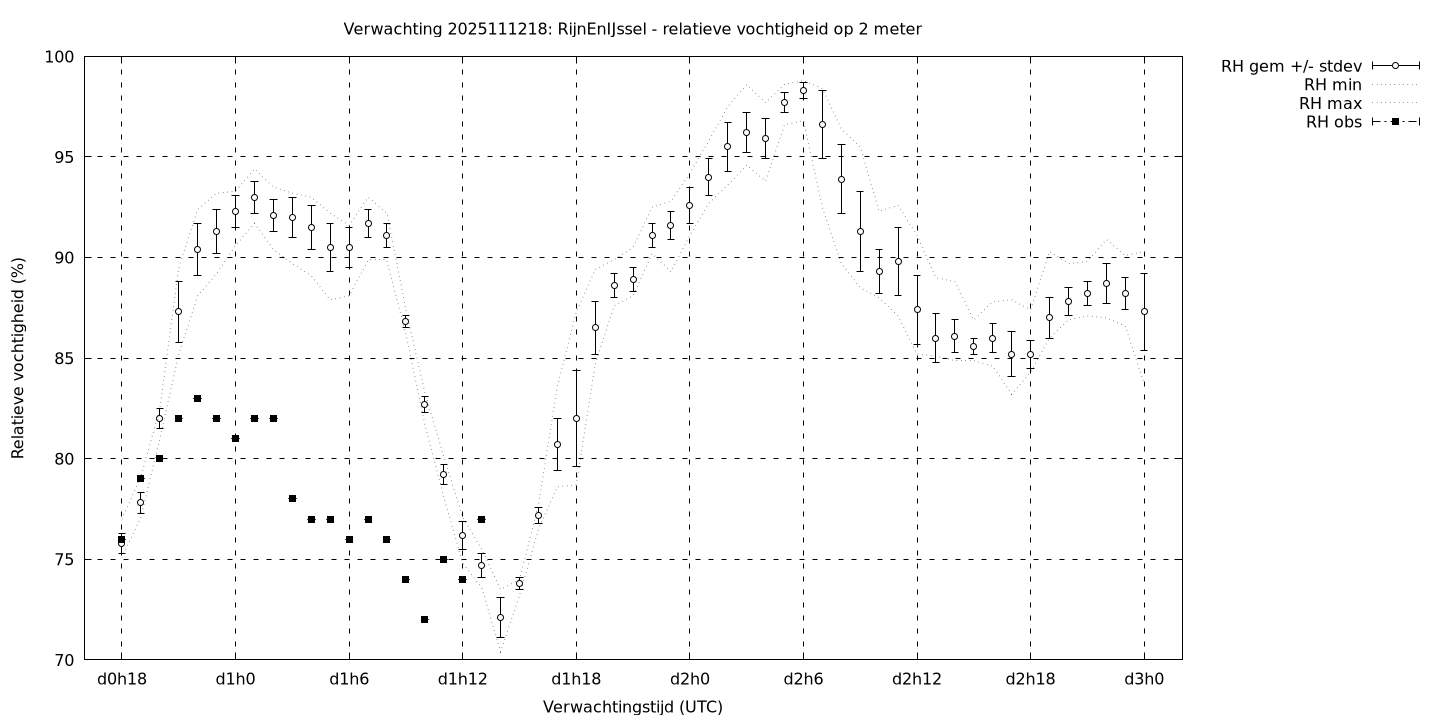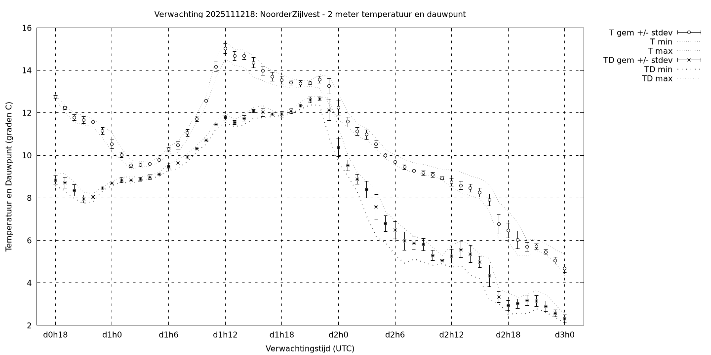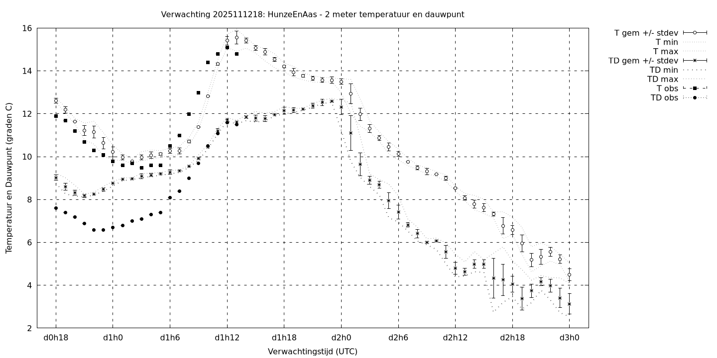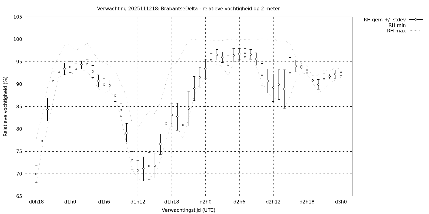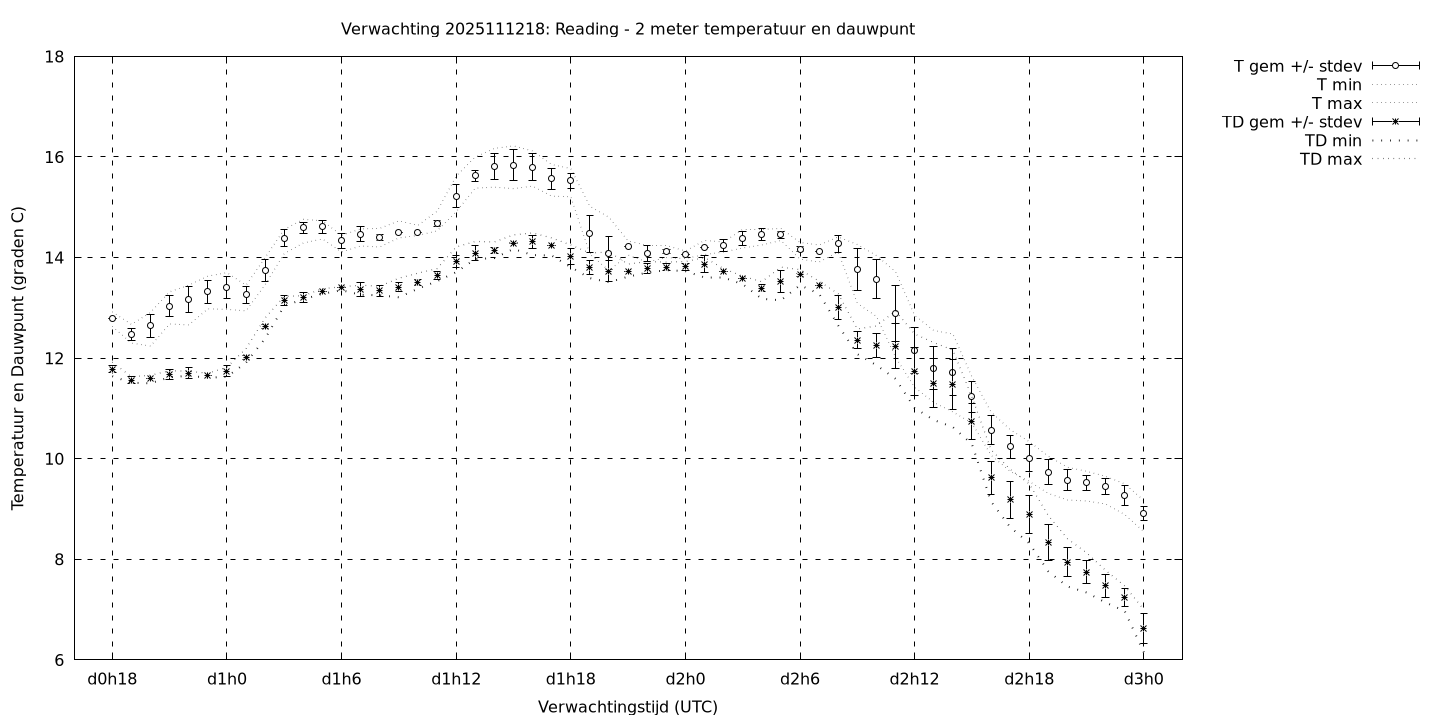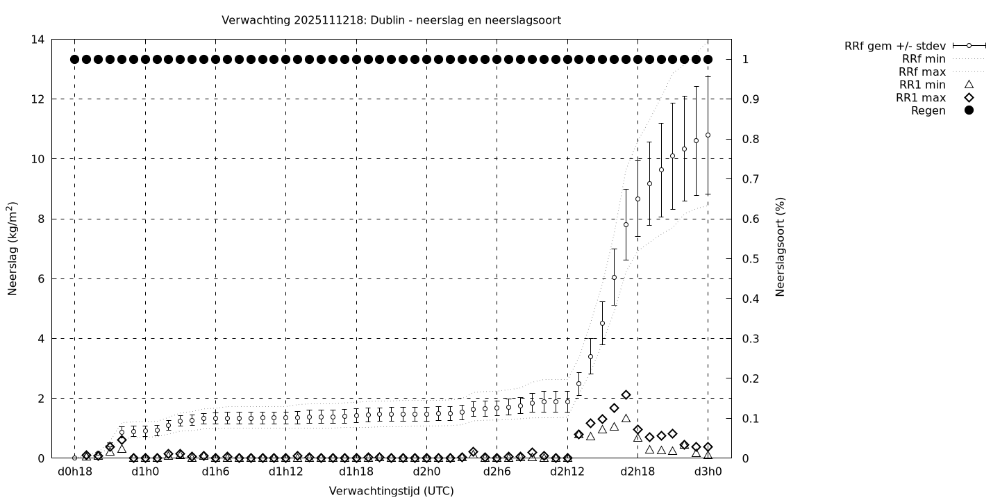 Tenslotte volgen grafieken van weersverwachtingen per locatie/waterschap, die gegoten zijn in de vorm van een tijdreeks, waarin niet alleen het gebiedsgemiddelde, maar ook de spreiding (via de standaarddeviatie) en het maximum en minimum gegeven worden. Tevens zijn de tabellen van de bijbehorende getallen gegeven.