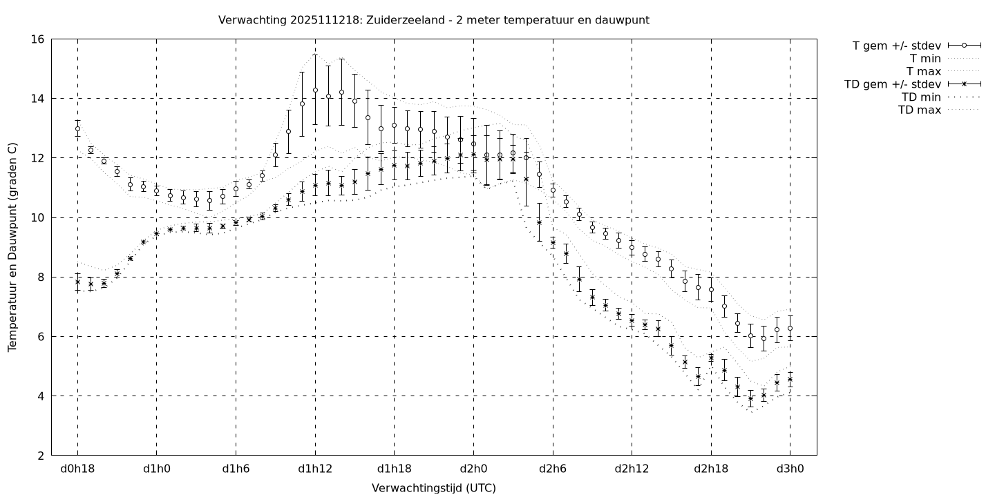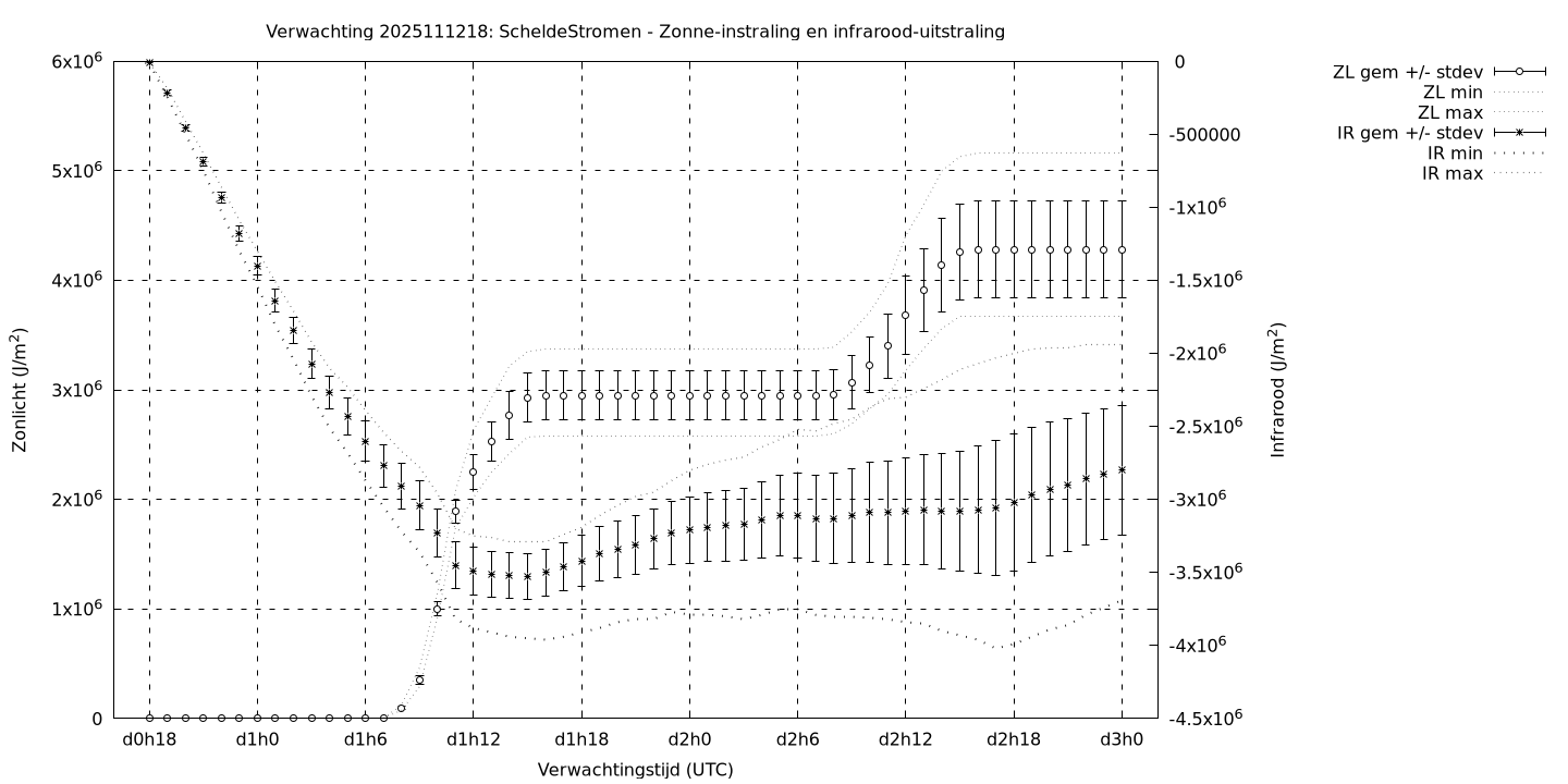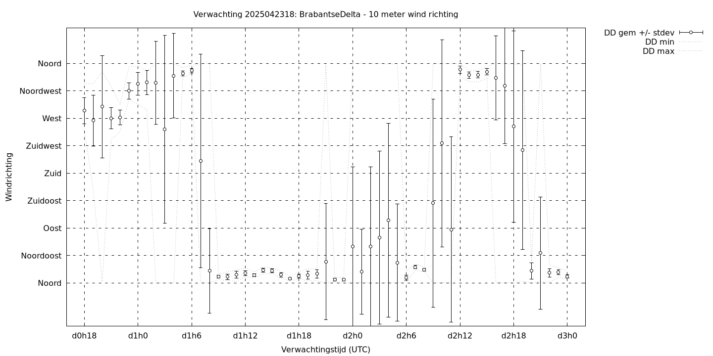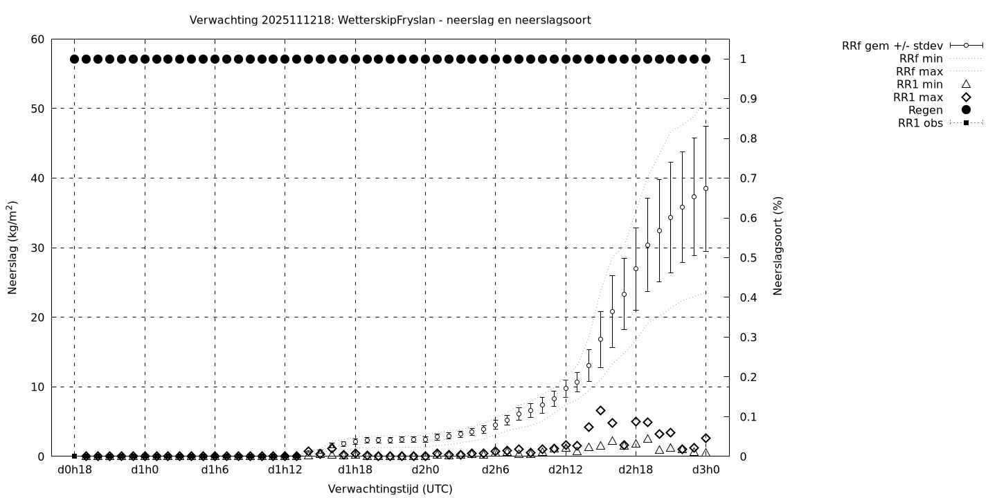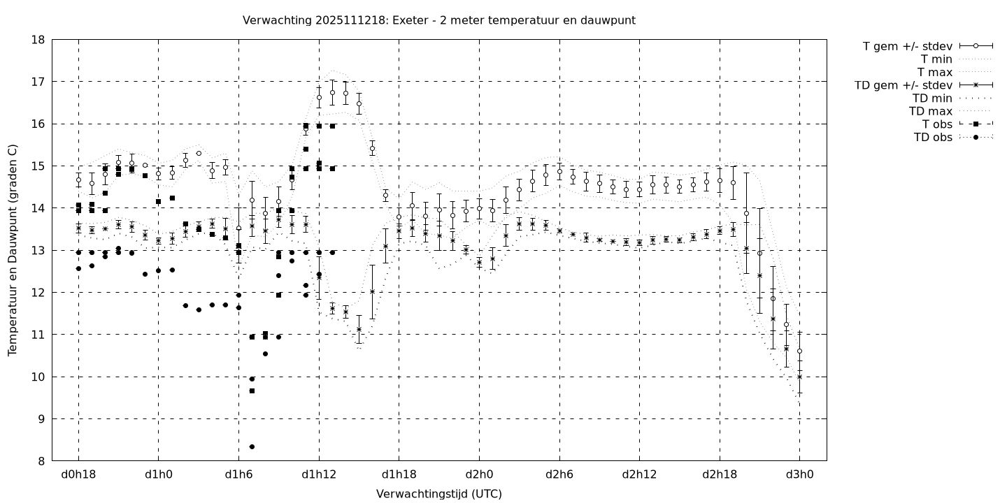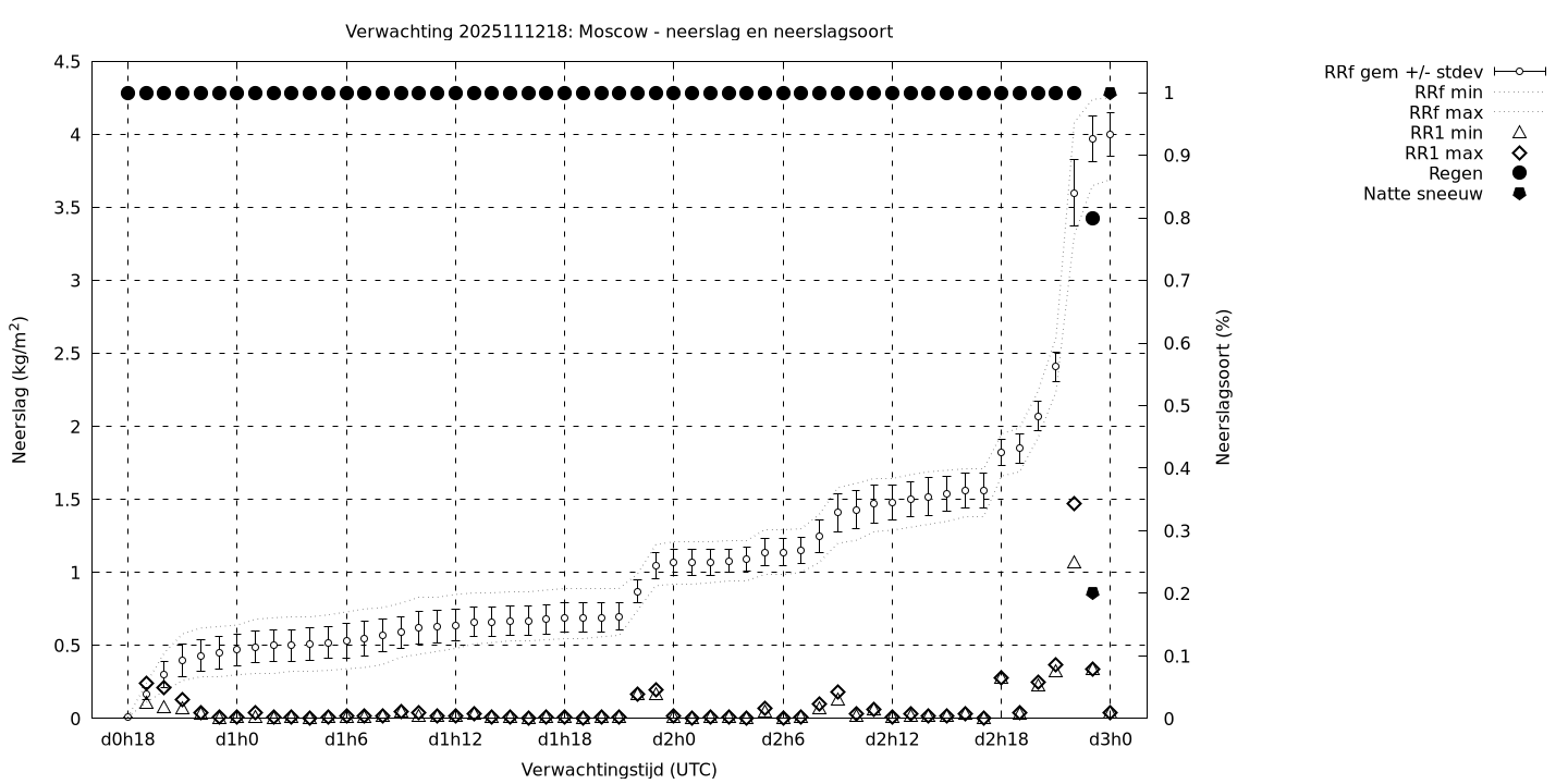 Tenslotte volgen grafieken van weersverwachtingen per locatie/waterschap, die gegoten zijn in de vorm van een tijdreeks, waarin niet alleen het gebiedsgemiddelde, maar ook de spreiding (via de standaarddeviatie) en het maximum en minimum gegeven worden. Tevens zijn de tabellen van de bijbehorende getallen gegeven.