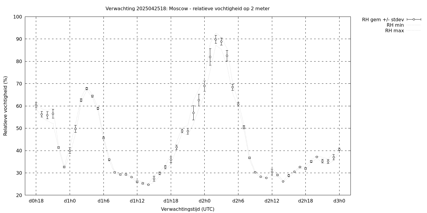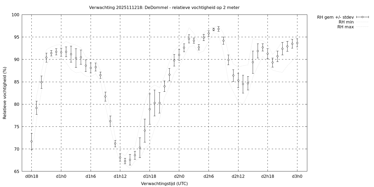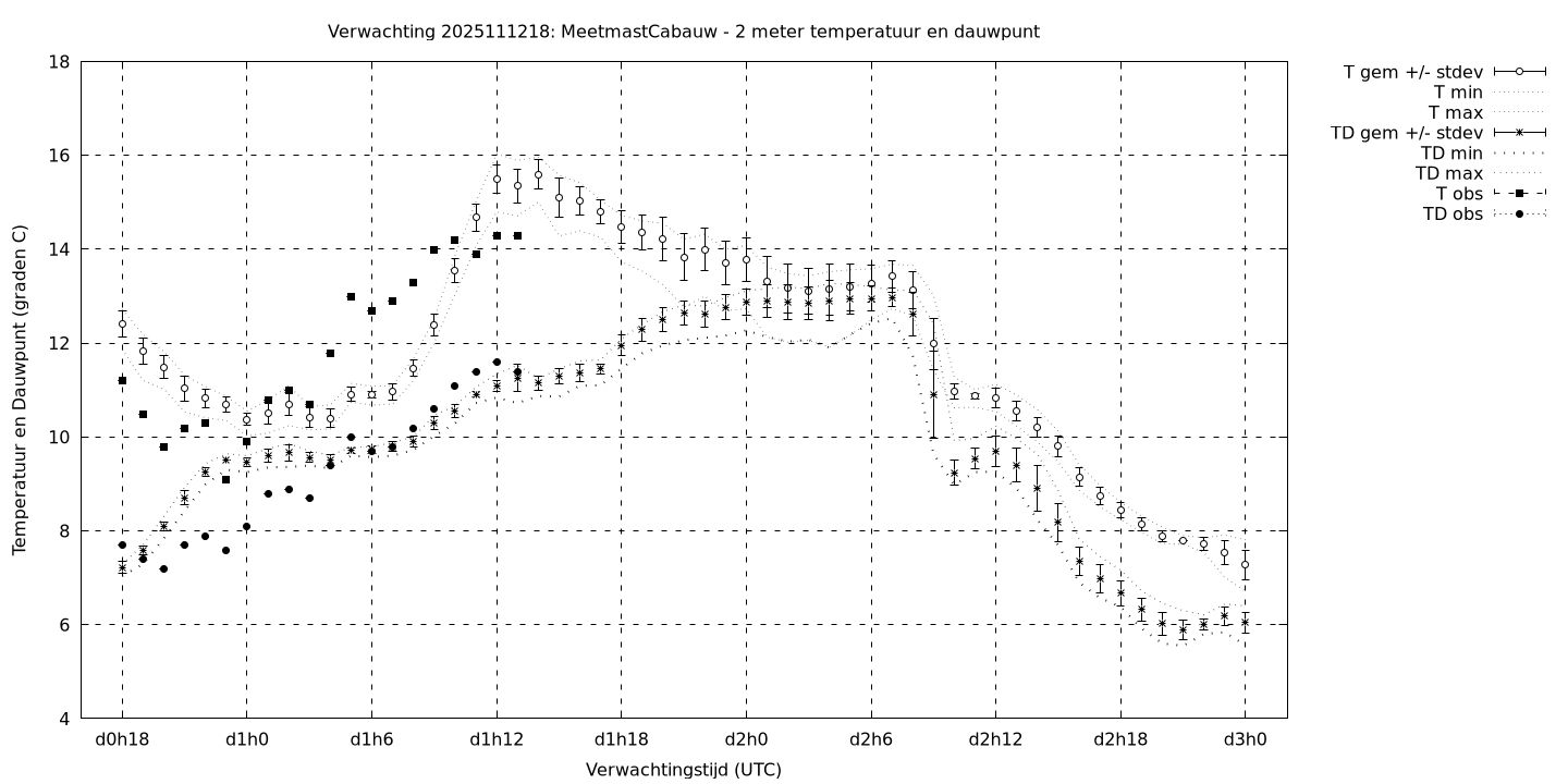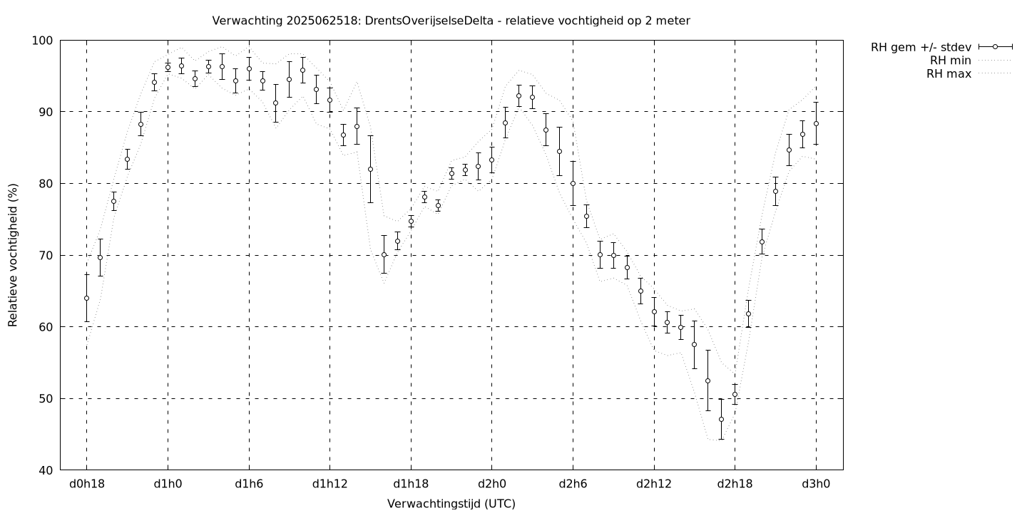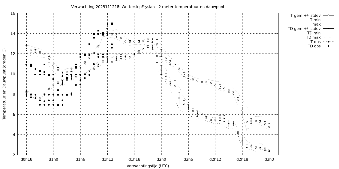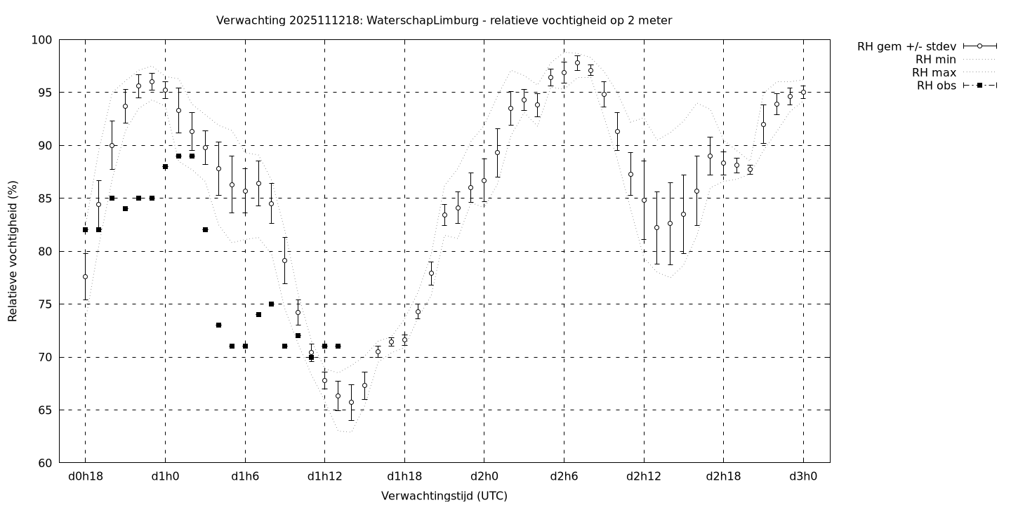 Tenslotte volgen grafieken van weersverwachtingen per locatie/waterschap, die gegoten zijn in de vorm van een tijdreeks, waarin niet alleen het gebiedsgemiddelde, maar ook de spreiding (via de standaarddeviatie) en het maximum en minimum gegeven worden. Tevens zijn de tabellen van de bijbehorende getallen gegeven.