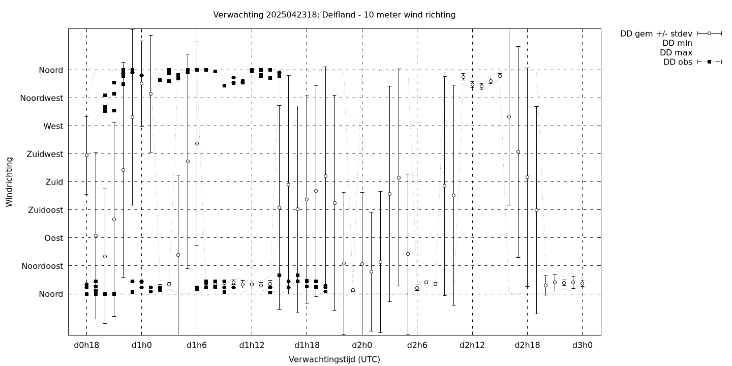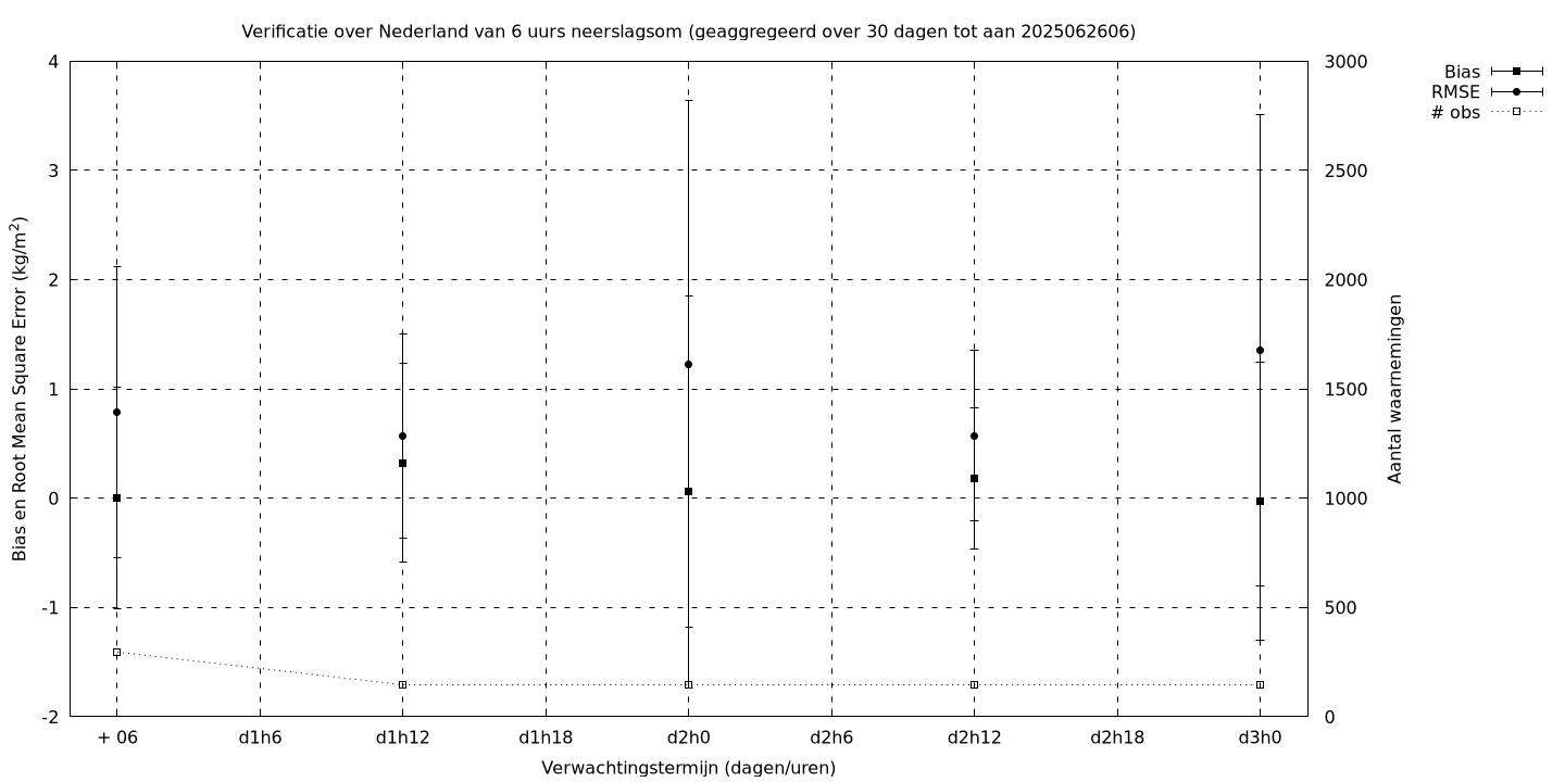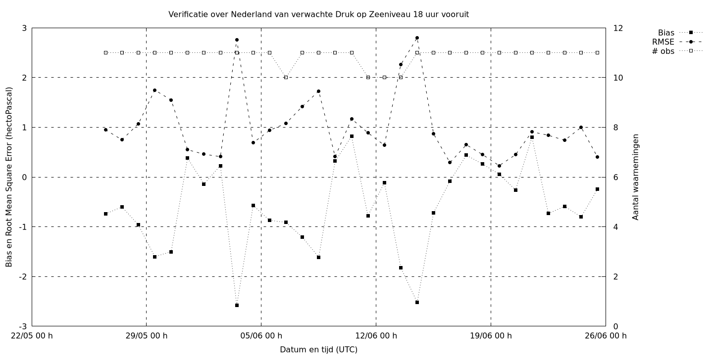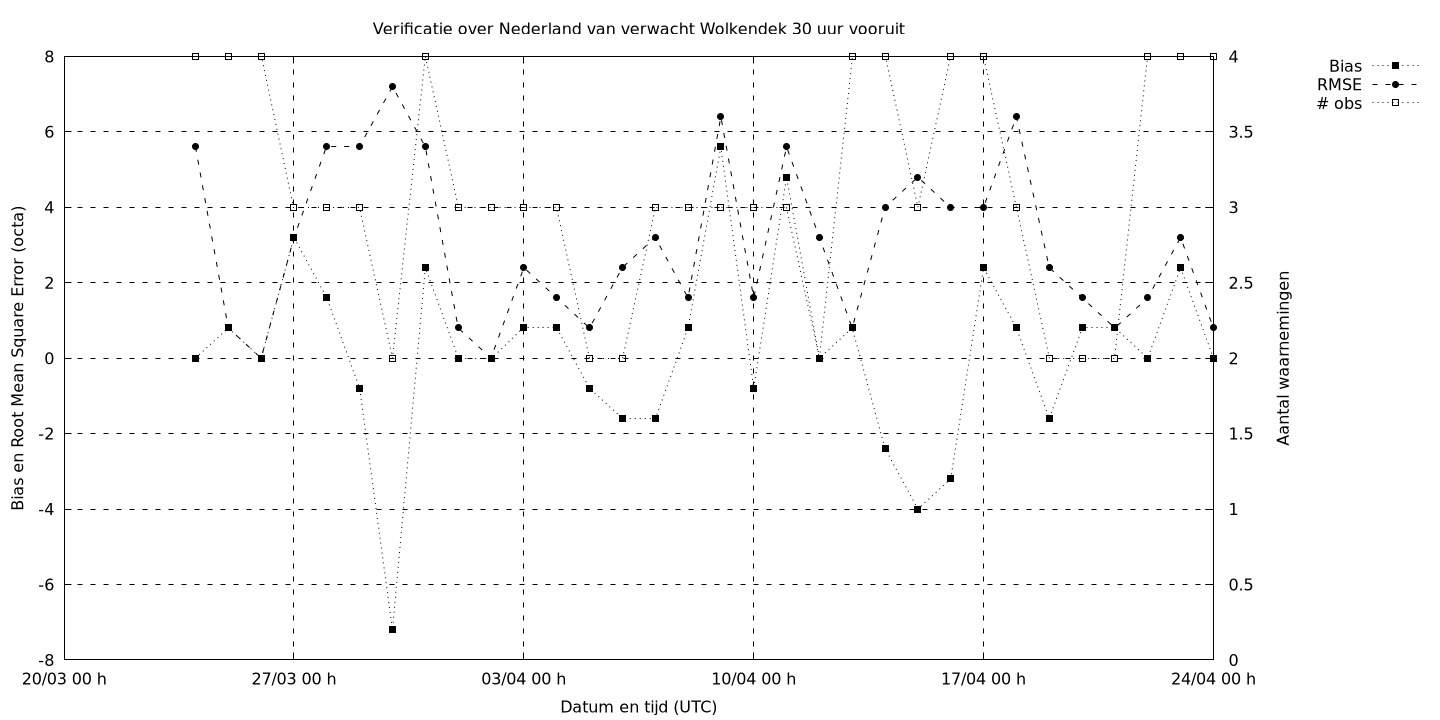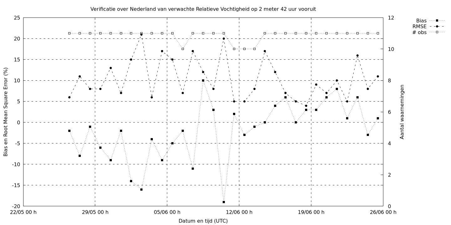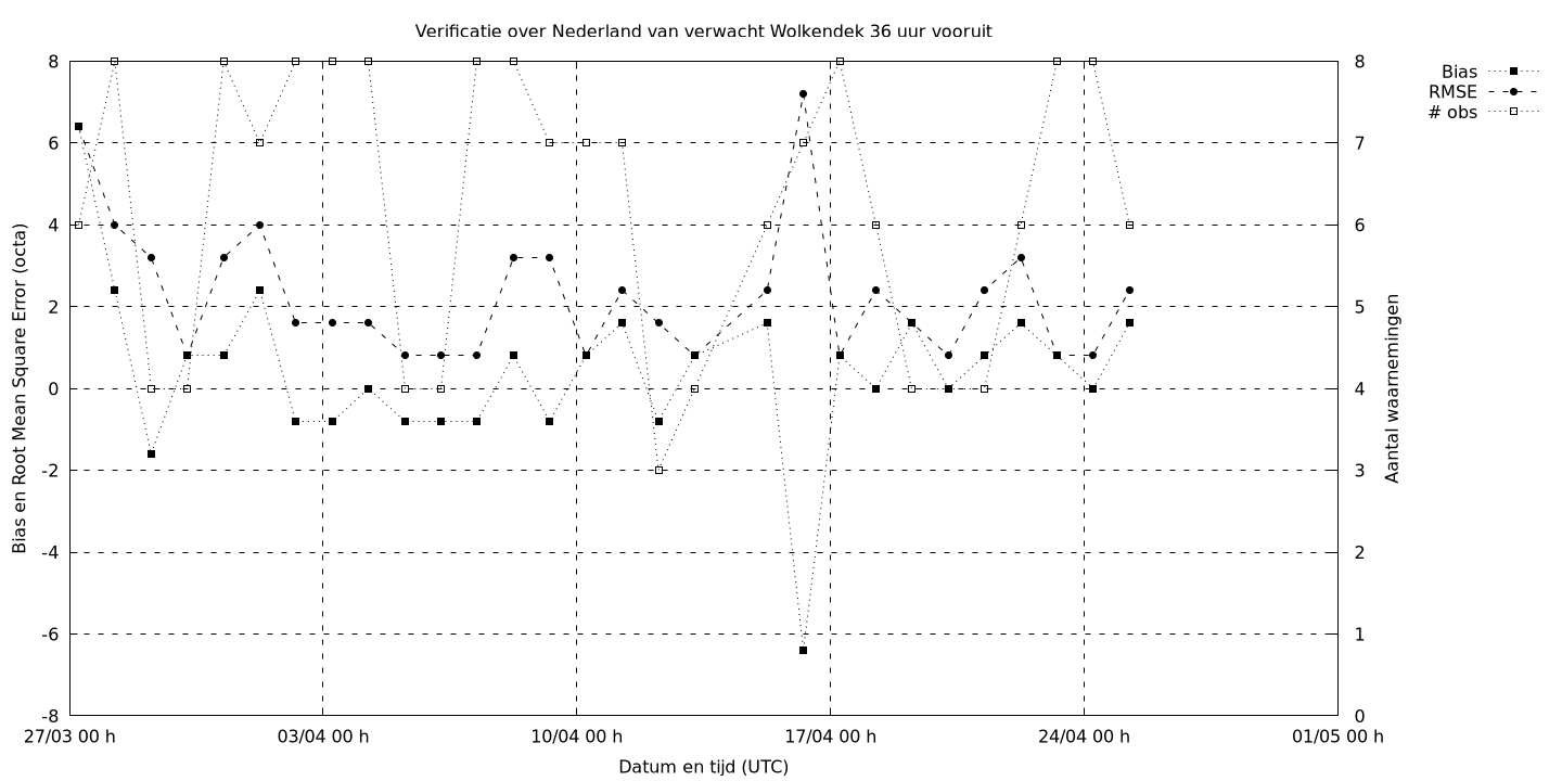 Met het gebruik van het 0,05x0,05 graads HIRLAM (5,5 km) kunnen we iets beters doen, namelijk een gebied van roostervierkanten nemen als representatief voor een waterschap. Dit maakt het mogelijk de spreiding van verwachtingswaarden in het waterschap mee te wegen in de op te stellen verwachting. Voor een waterschap is dat een 5x5 gebied van roostervierkanten, voor een stad 3x3 en voor een locatie (meetmast Cabauw) ook een gebied van 3x3 roostervierkanten (dit laatste voornamelijk om het weer in de omgeving van de mast in beeld te brengen).