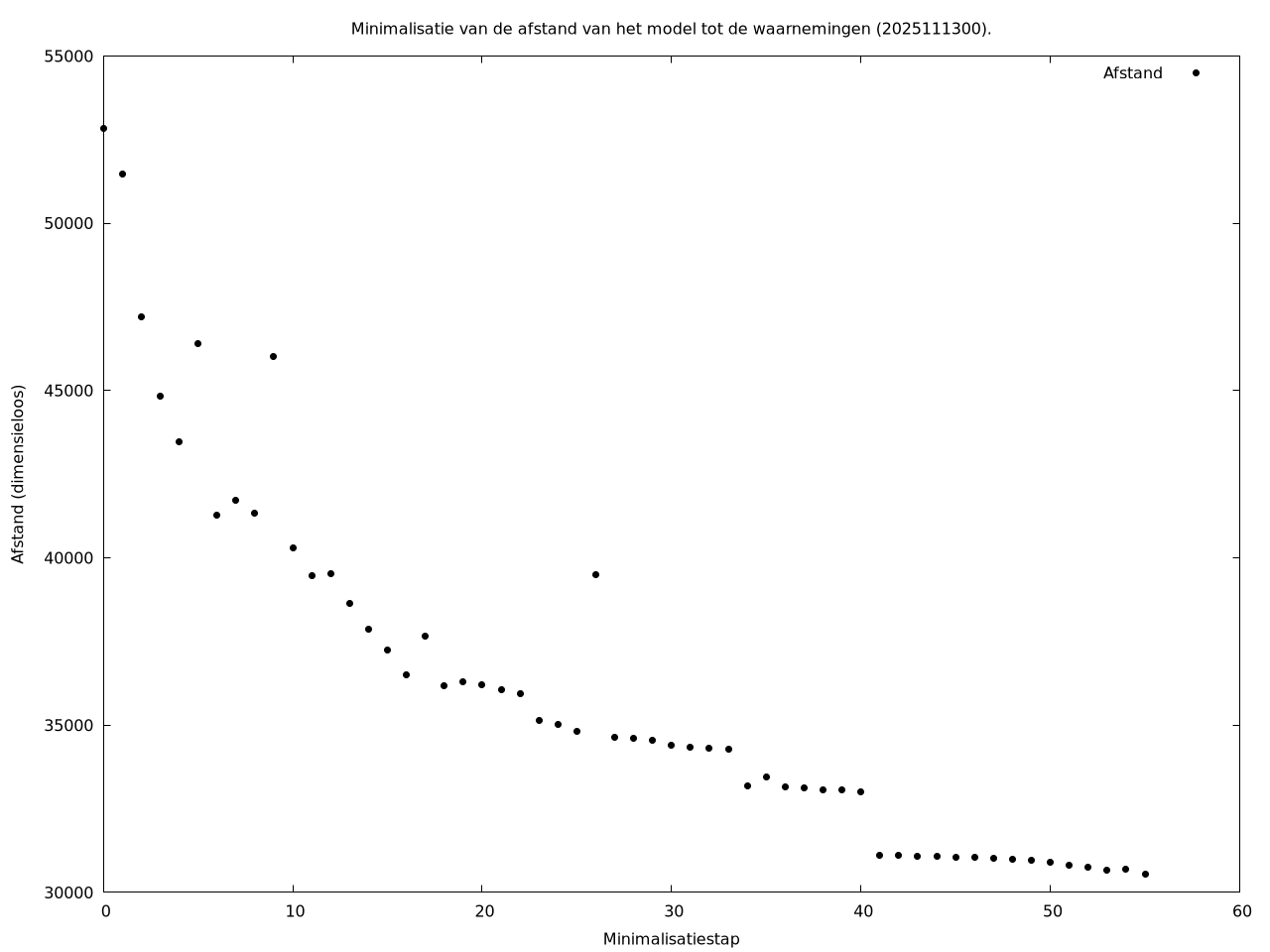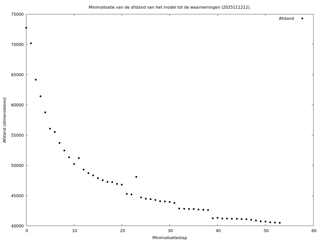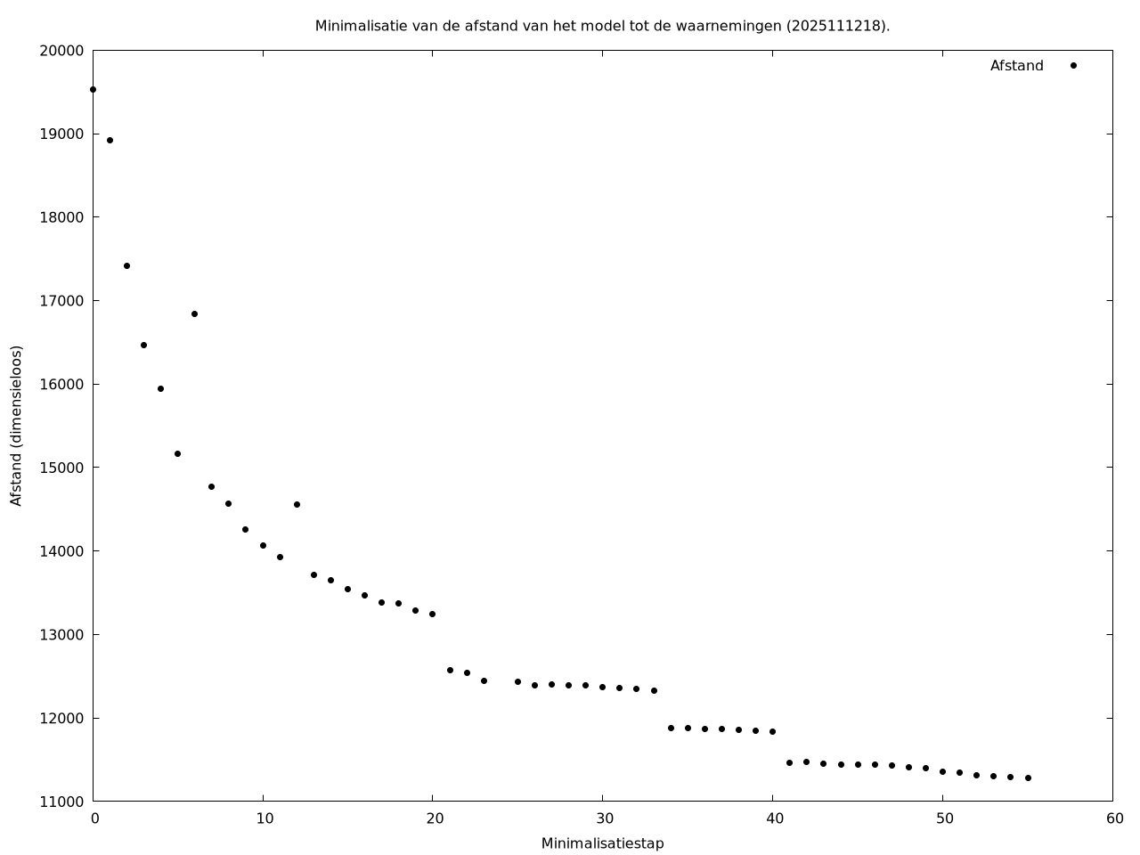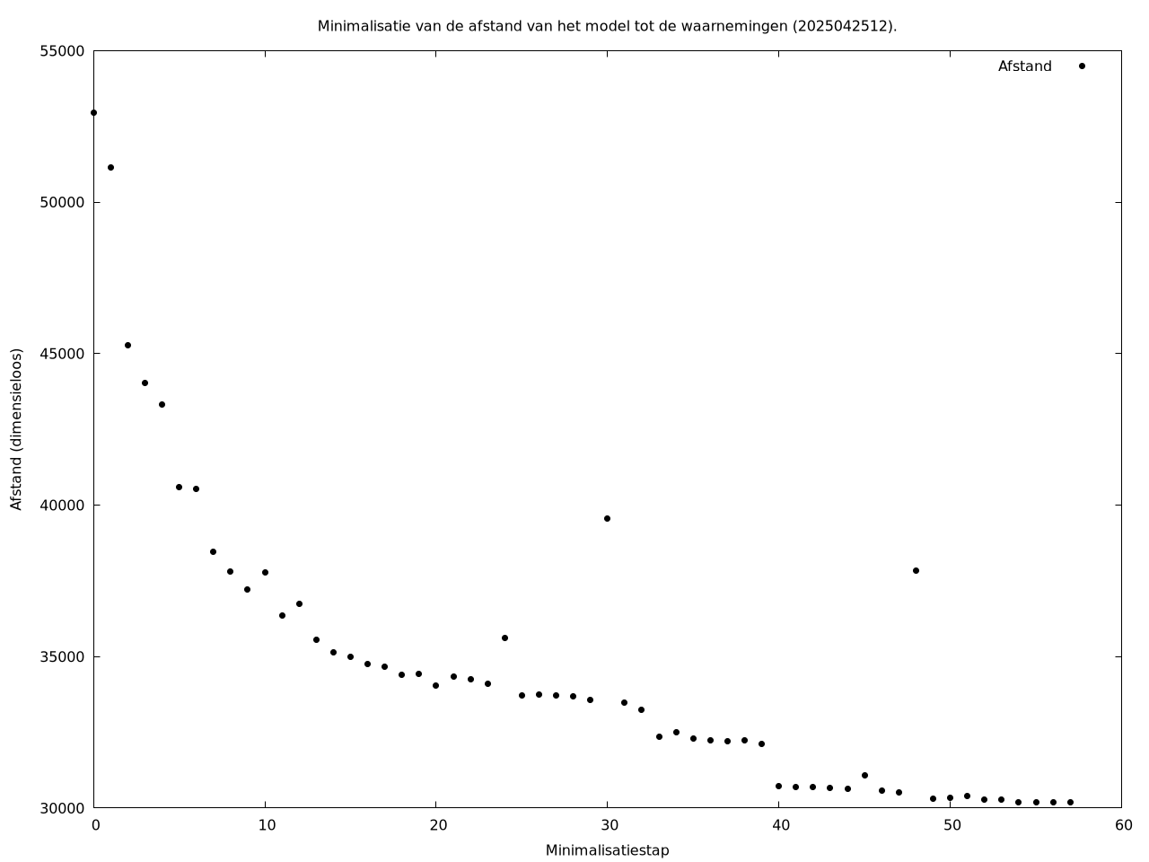 | Afstand tot de waarnemingen aan het begin van de minimalisatie | |
