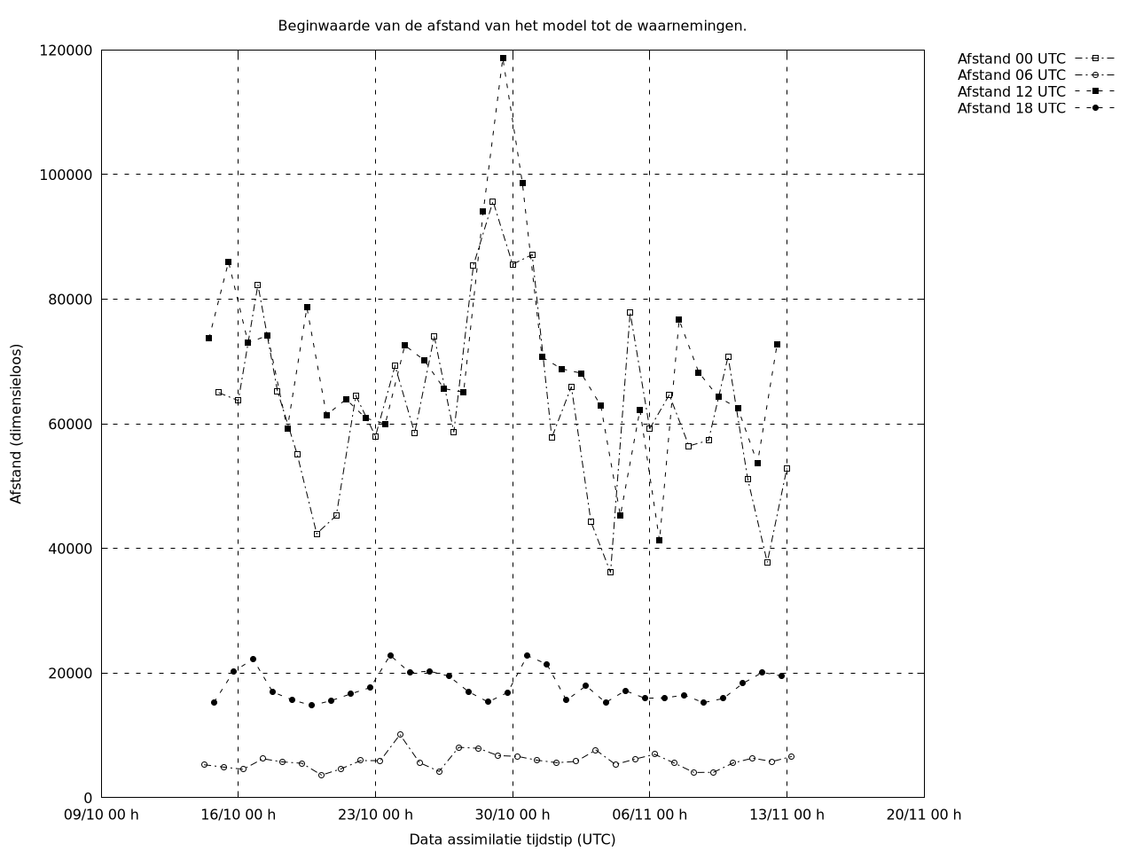 Deze afstand geeft aan in hoeverre het model in 6 uur tijd verwijderd is geraakt van de werkelijkheid, en is dus een maat voor de (on)voorspelbaarheid van de atmosfeer in die tijdspanne.